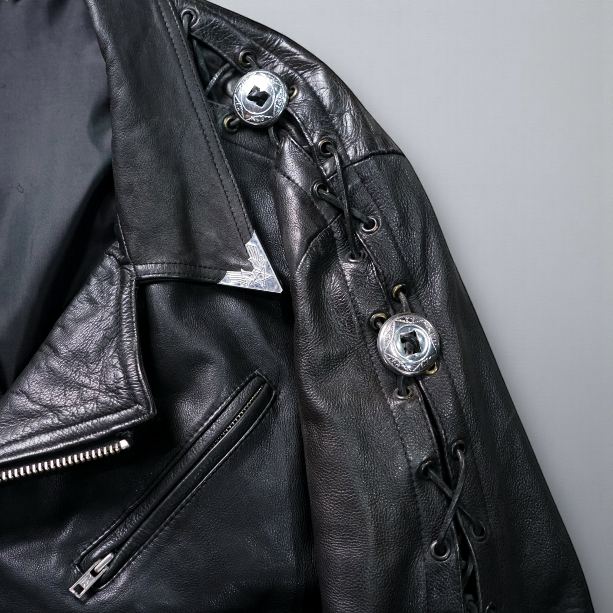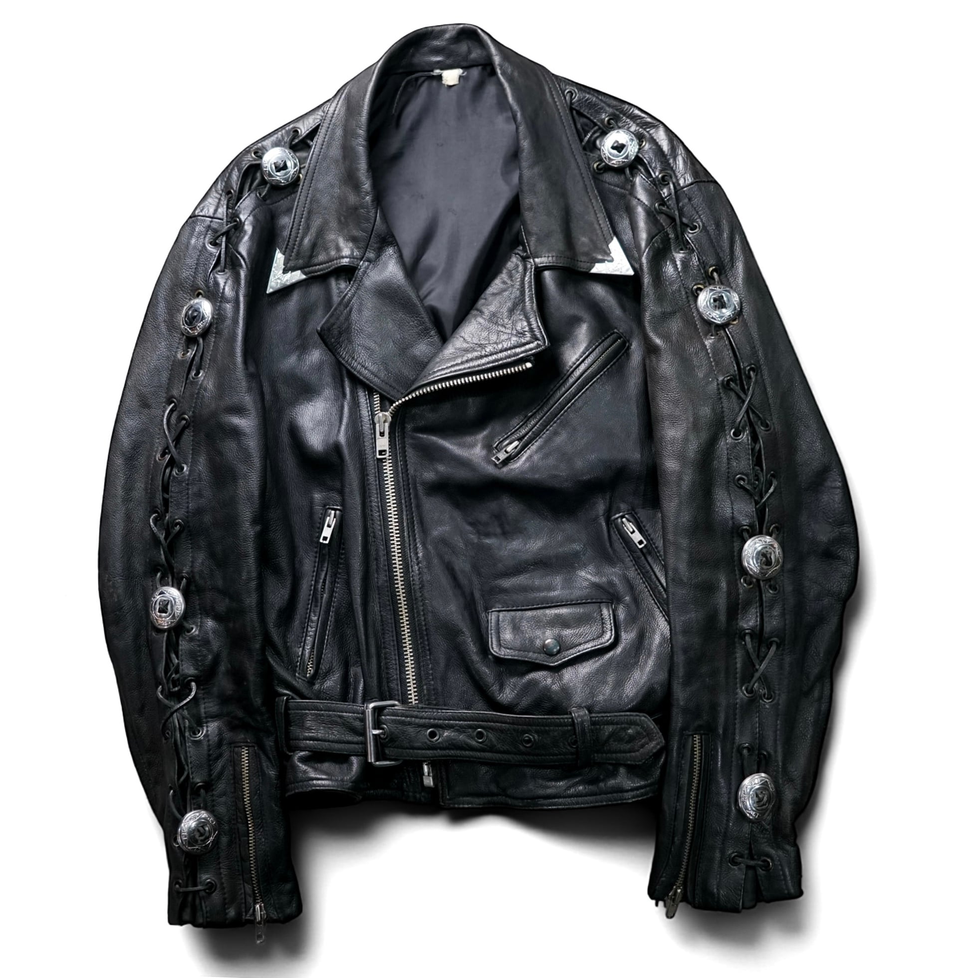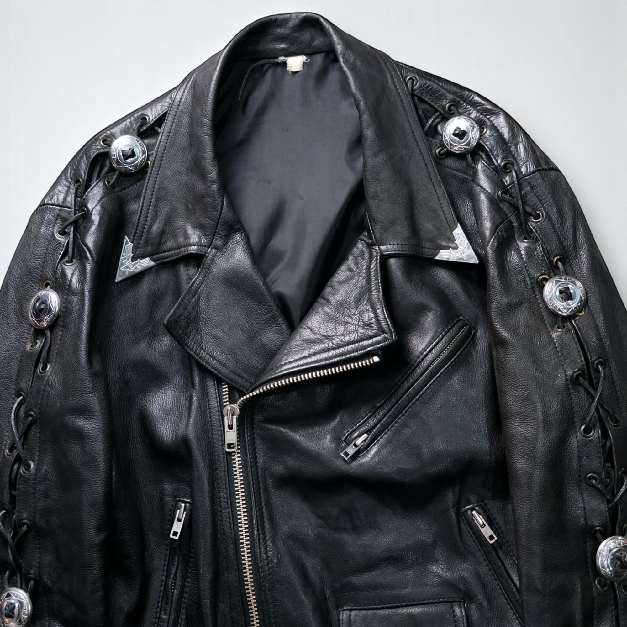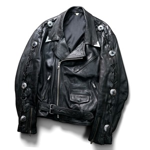 ウェスタン×ロックのムードを凝縮した、存在感抜群のコンチョ&レースアップ装飾付きヴィンテージライダース。