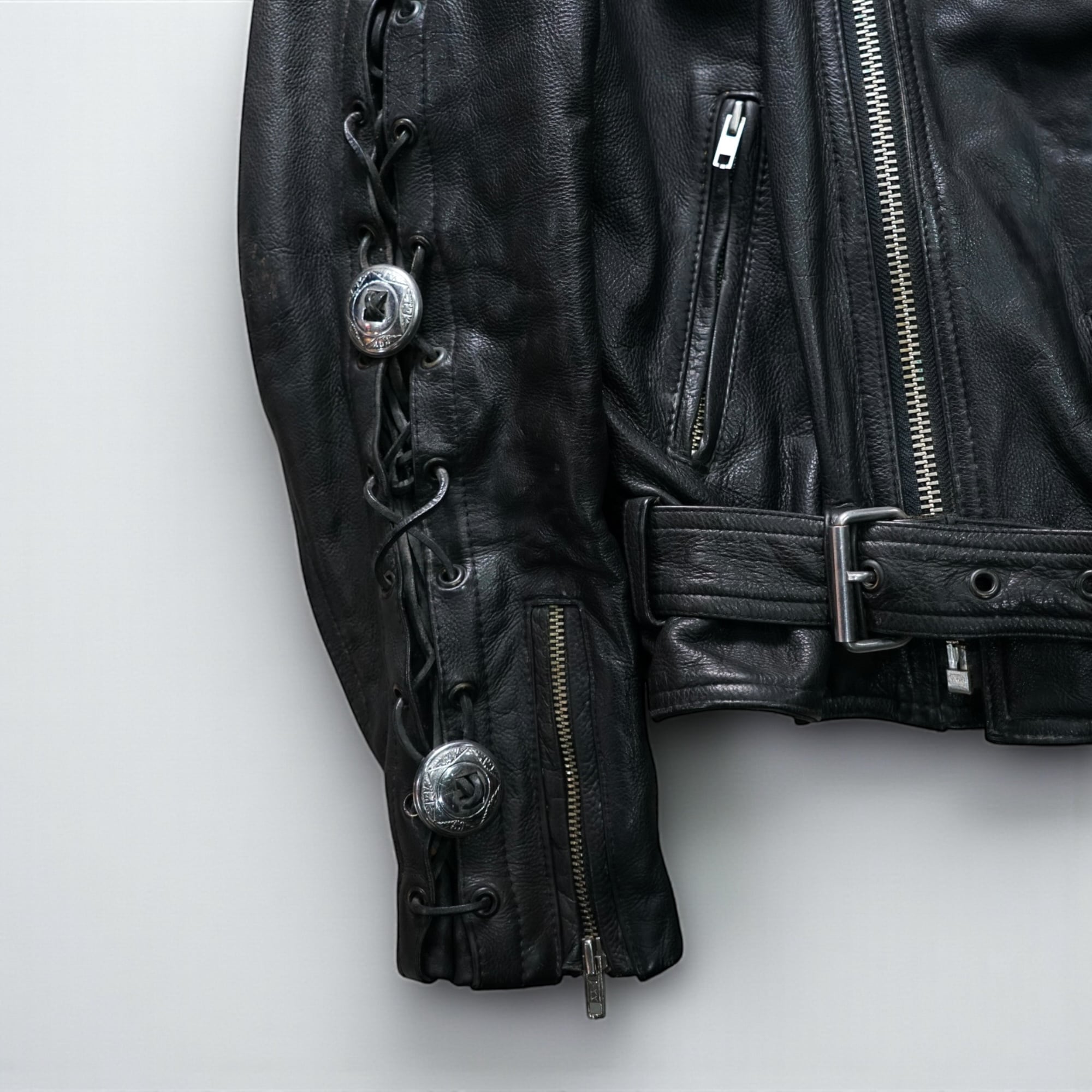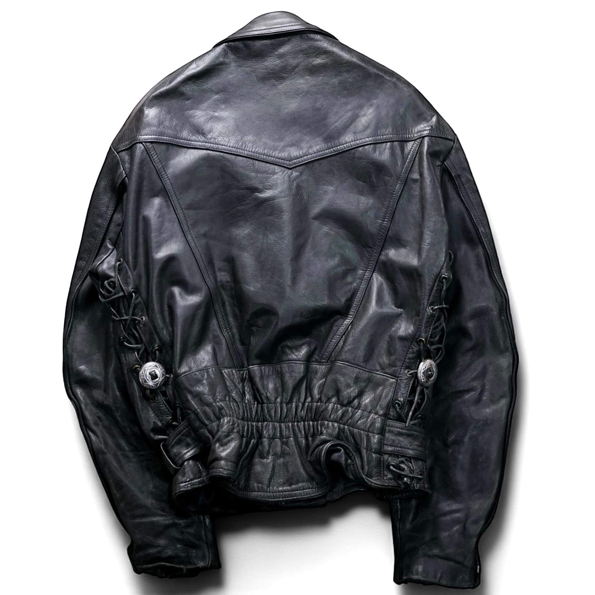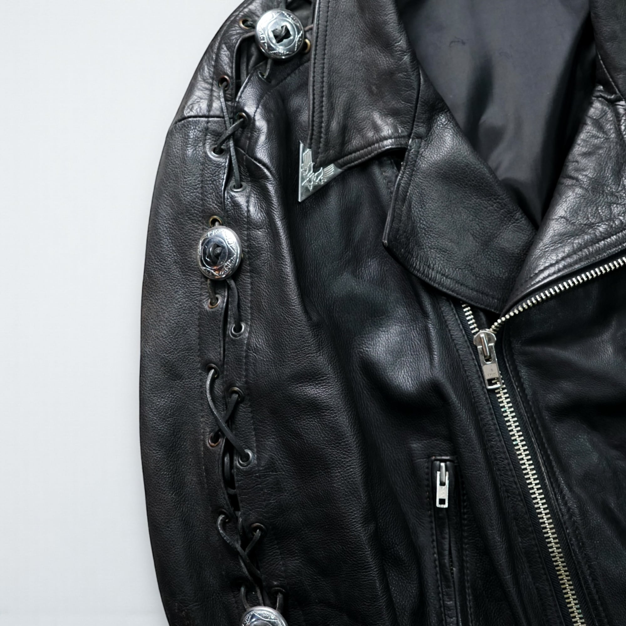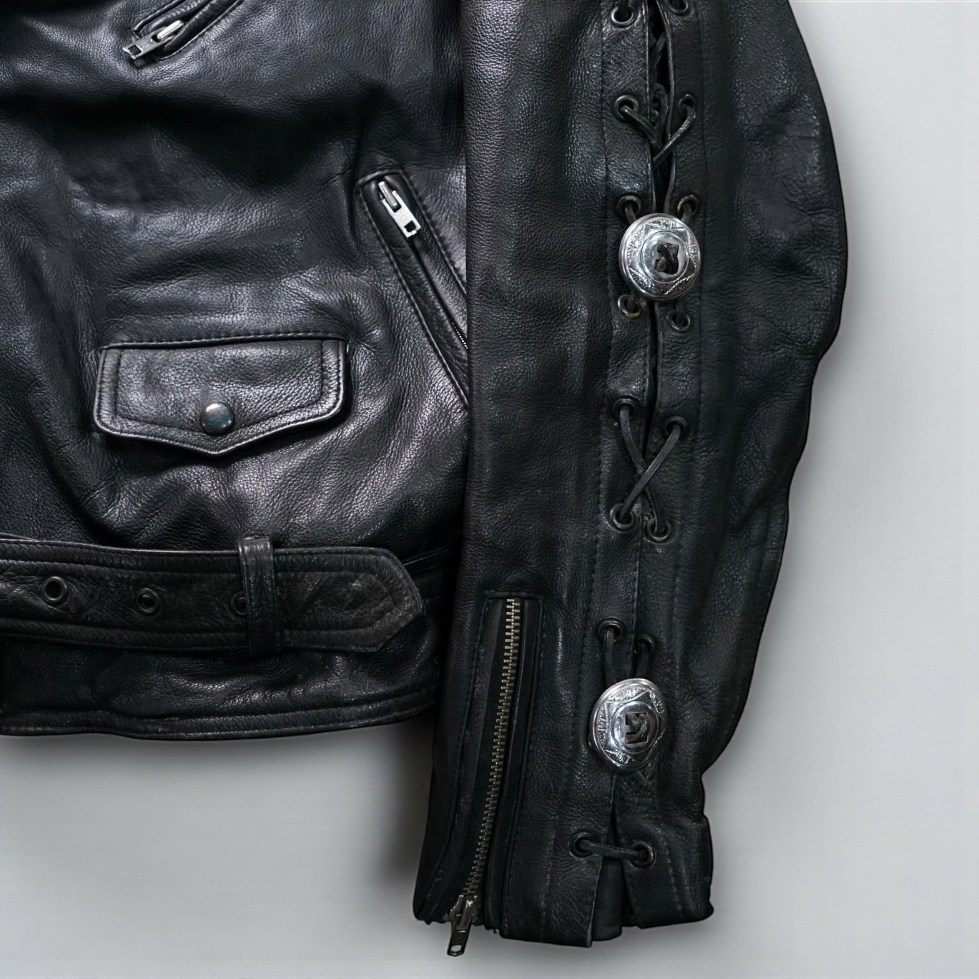 ウェスタン×ロックのムードを凝縮した、存在感抜群のコンチョ&レースアップ装飾付きヴィンテージライダース。