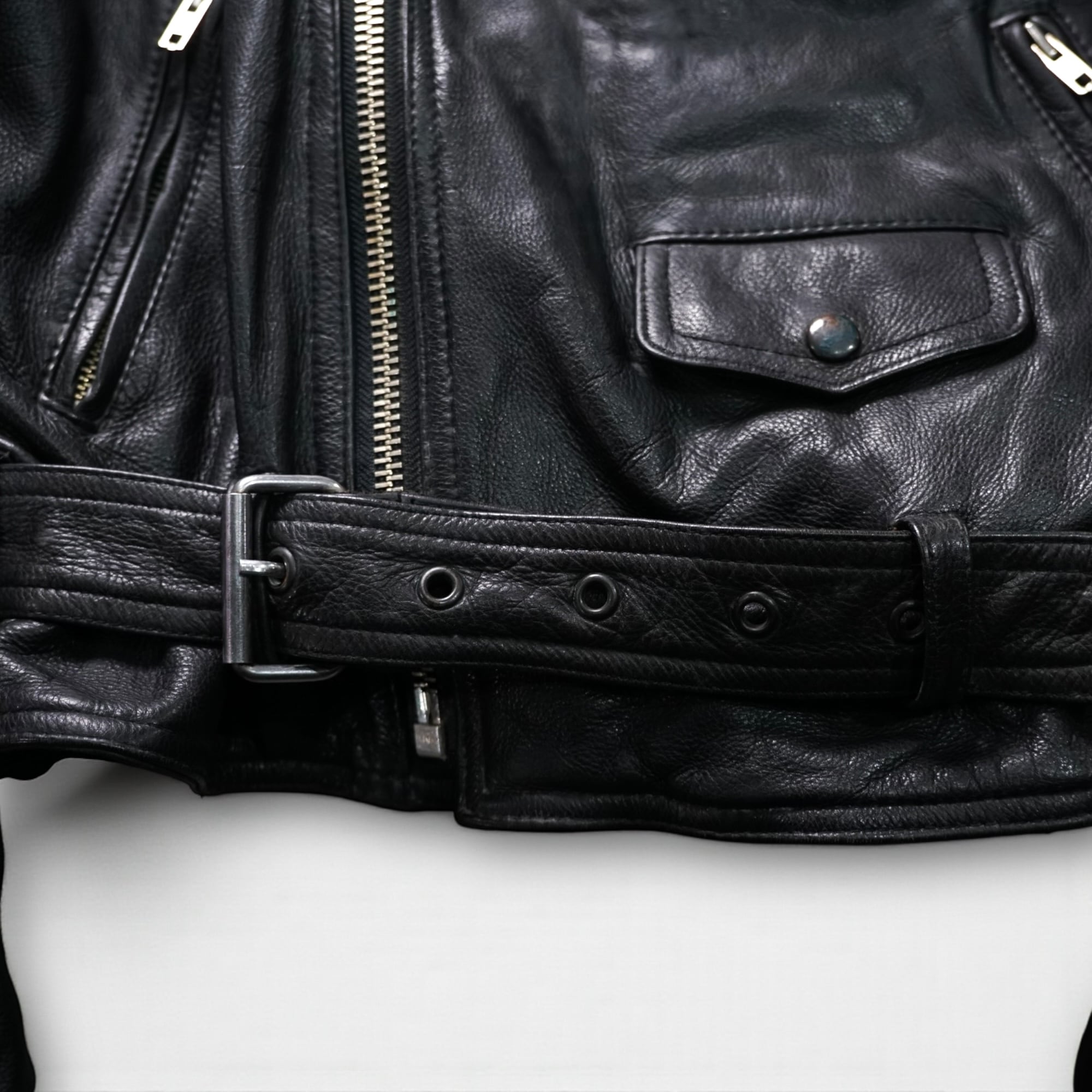 黒レザーにシルバーコンチョのコントラストは、モード〜ロック、アメカジまで幅広く相性が良く、シンプルなスタイリングに羽織るだけで圧倒的な存在感を演出。