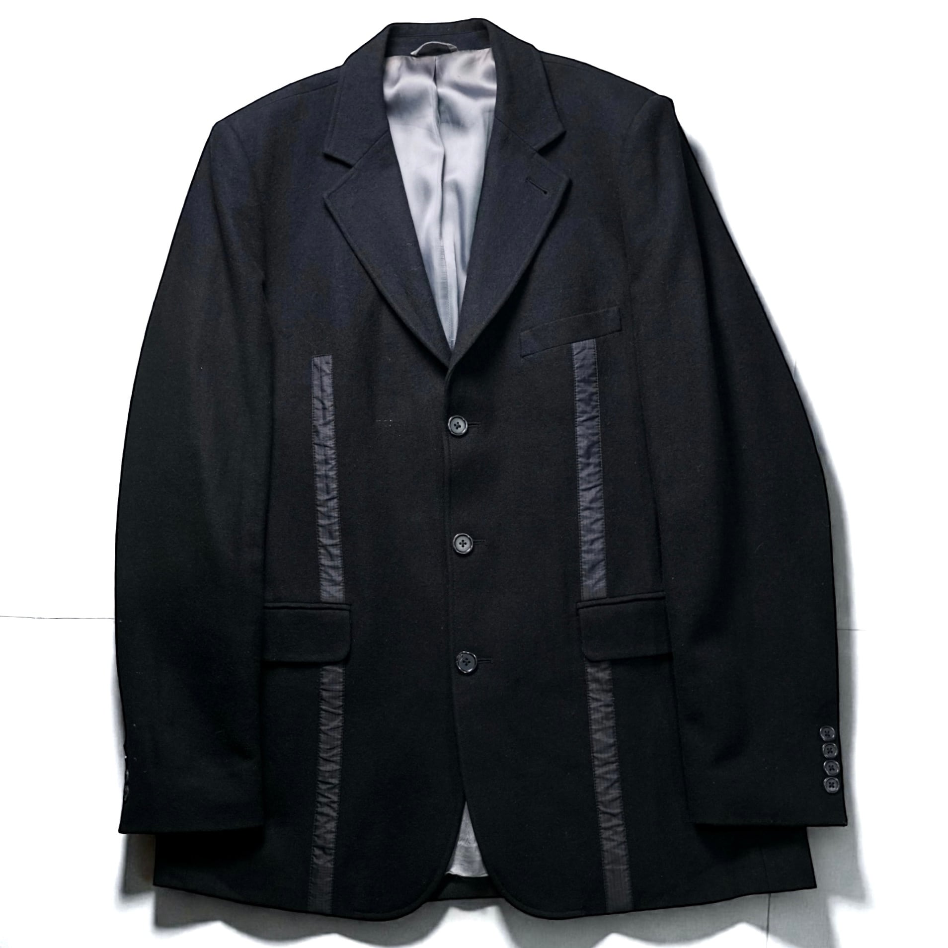 ウールの厚みはしっかりありつつ、着用するとドレープが自然に落ち、90’s〜00’s特有のリラックスした肩の抜け感が出るシルエット。