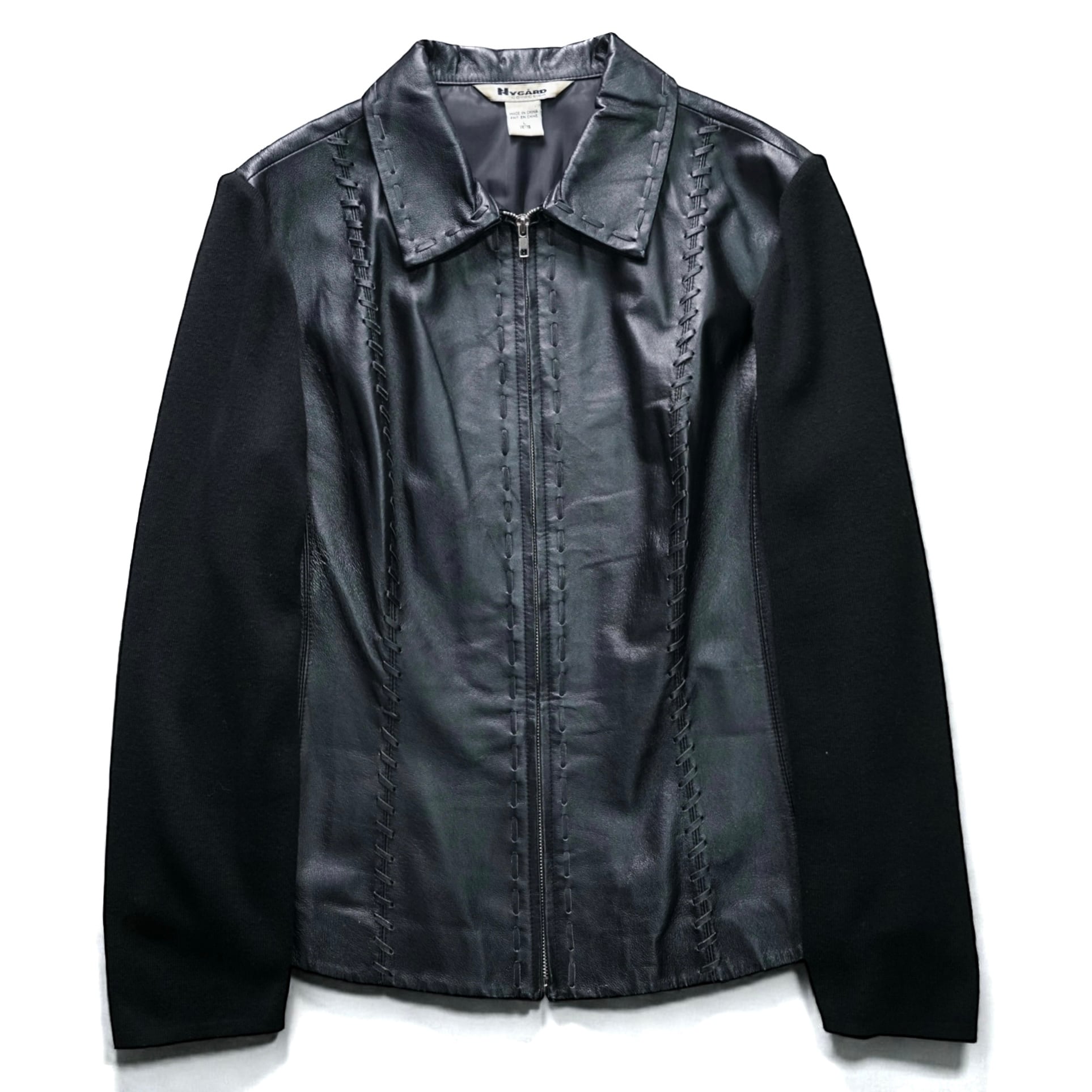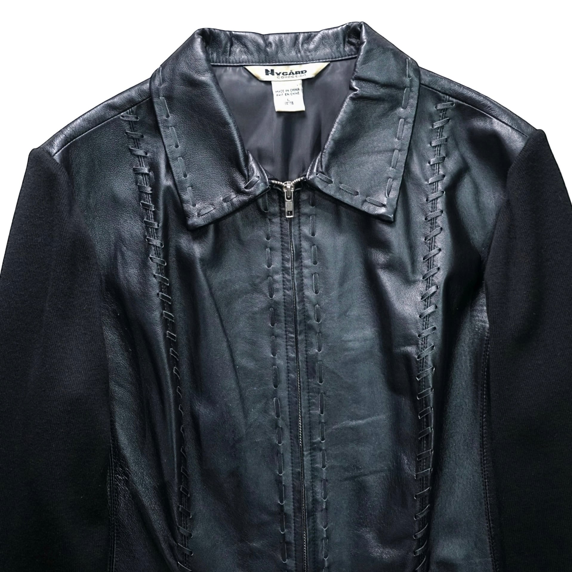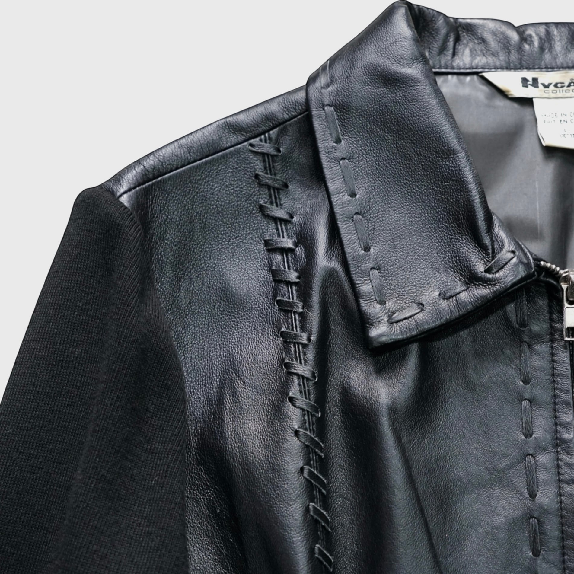 レザーとニットを切り替えた、Nygård Collectionらしいミニマルかつ構築的なデザインの一着。