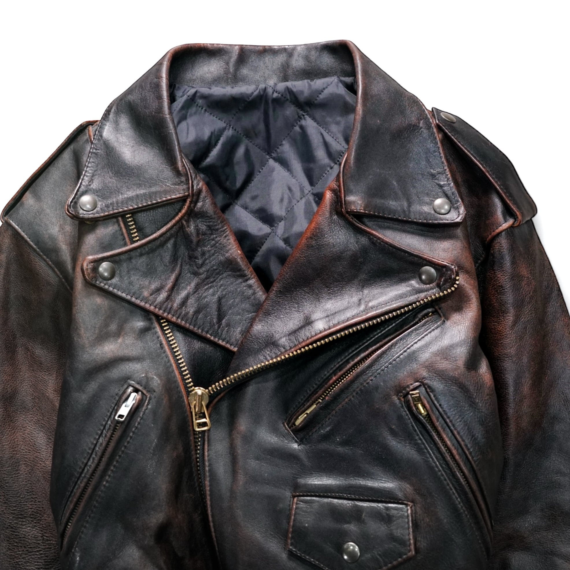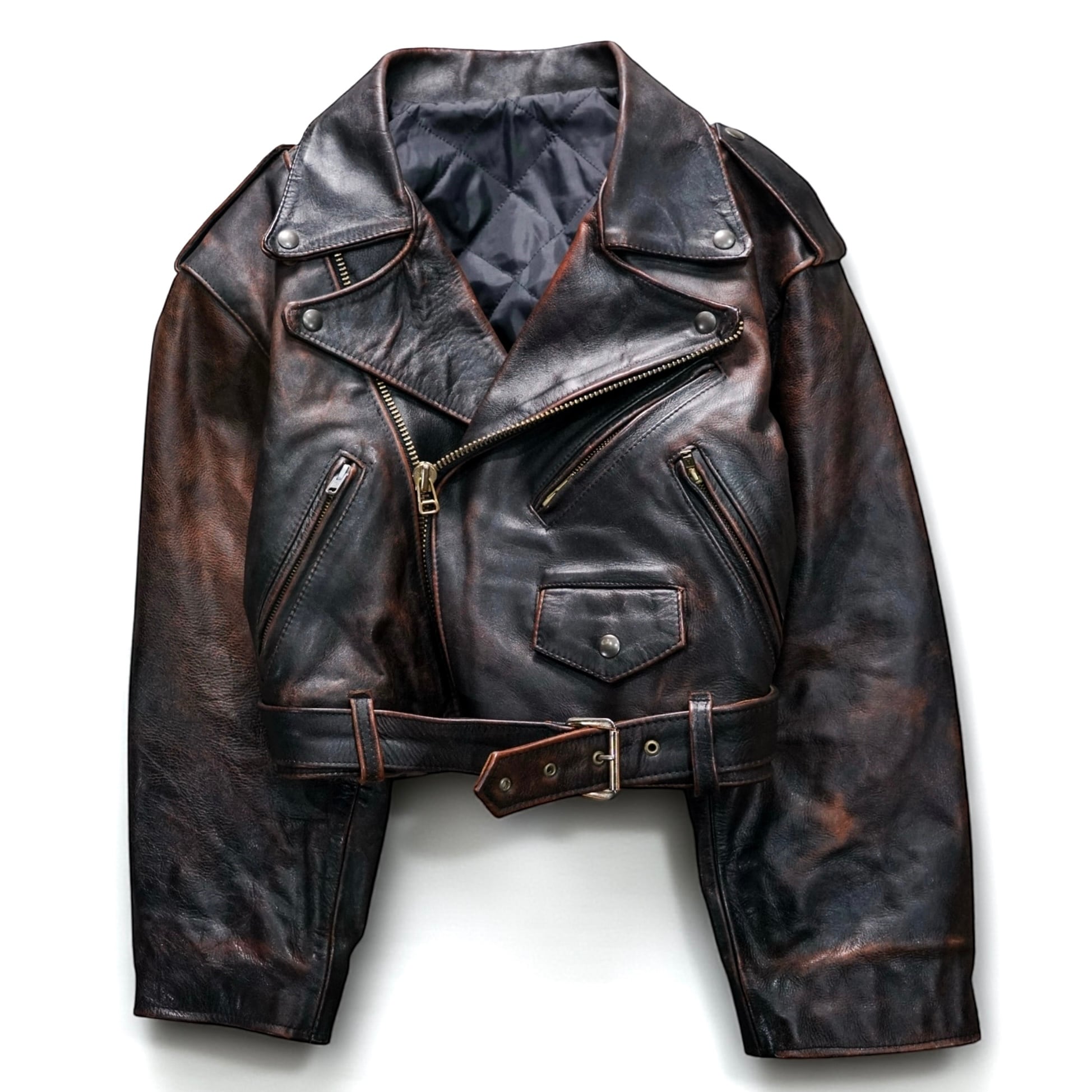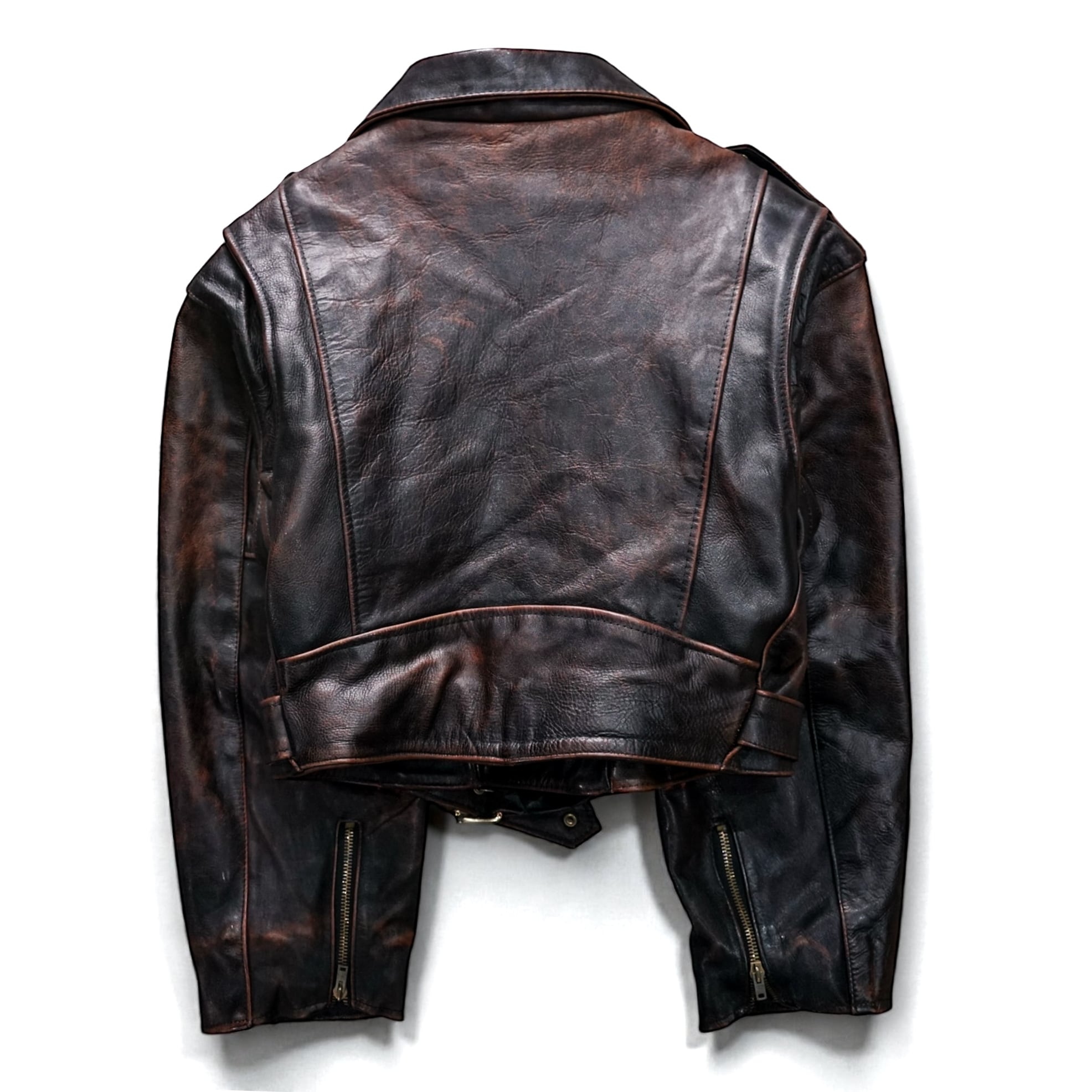 濃淡の効いたフェード感とドライタッチな質感が魅力の、“ヴィンテージならではの色気”をまとったクロップド丈ライダース。