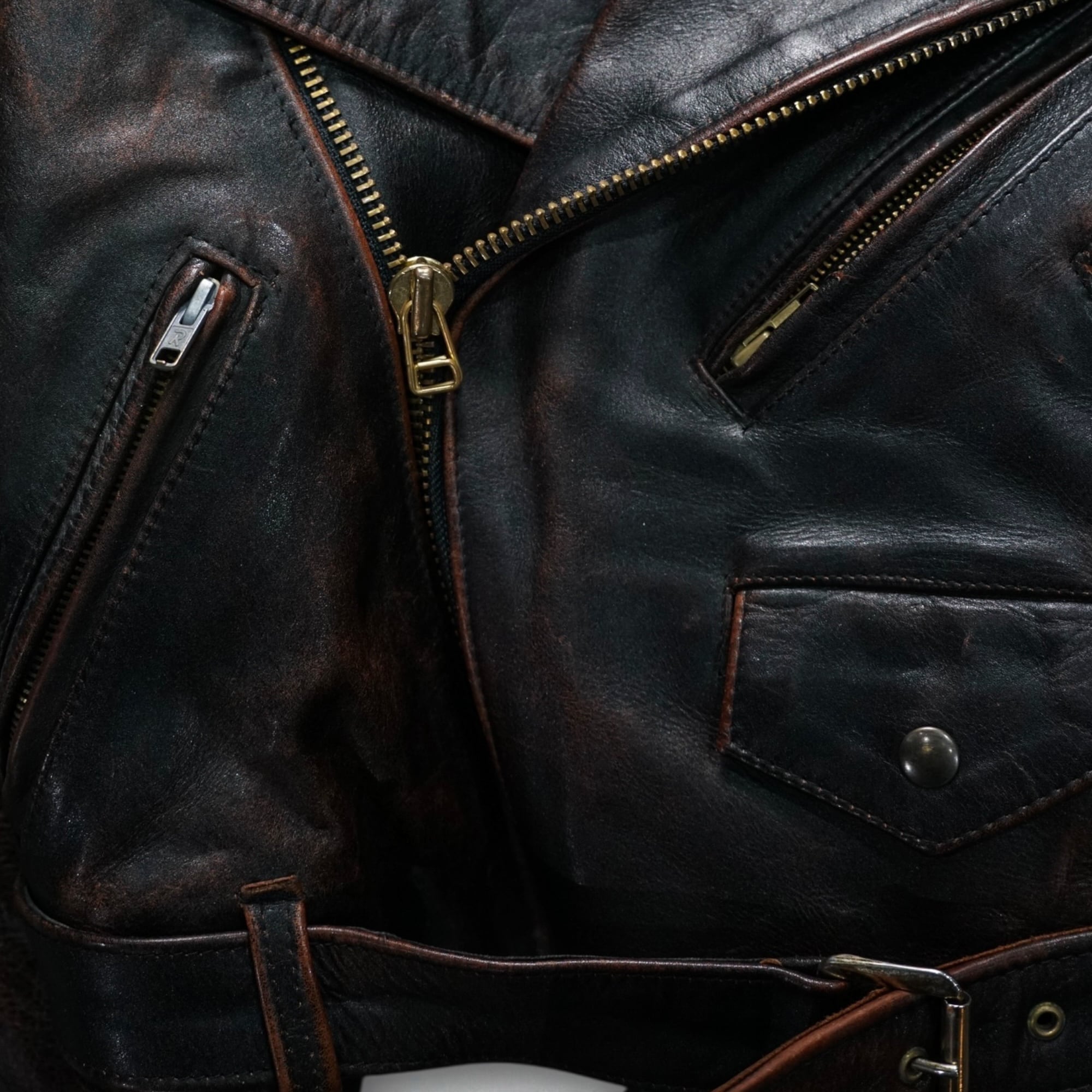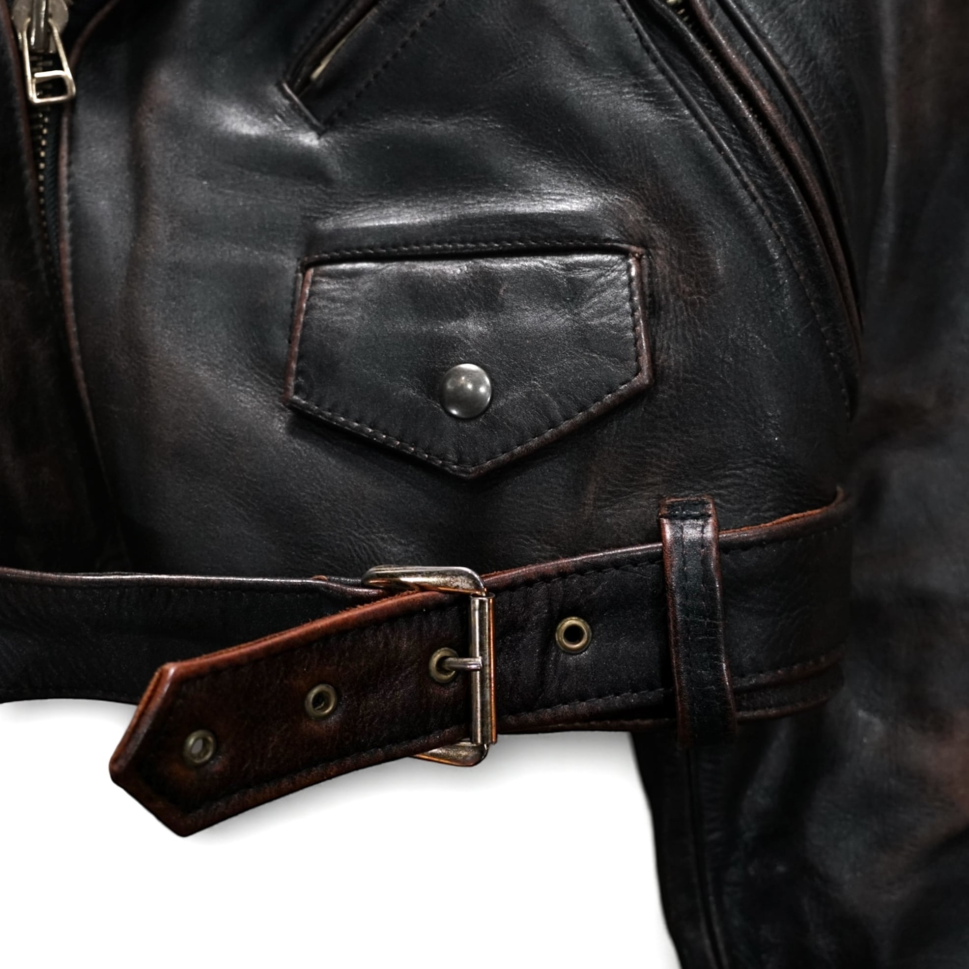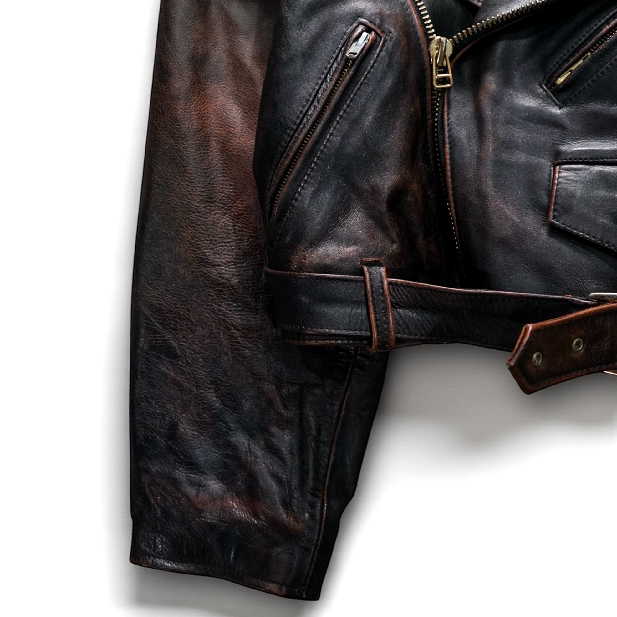 濃淡の効いたフェード感とドライタッチな質感が魅力の、“ヴィンテージならではの色気”をまとったクロップド丈ライダース。