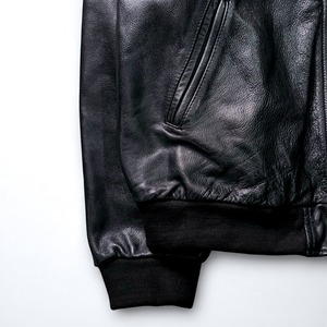太めの襟や大きめのフロントZIPなど、90’sレザーらしい無骨なディテールを踏襲しながらも、リブ裾・リブ袖で程良いスポーティさをプラス。