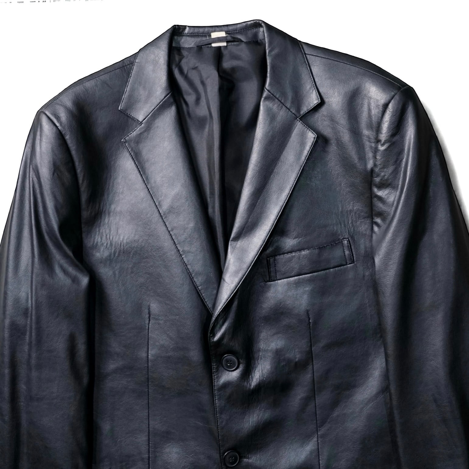 無機質な艶と落ち感が魅力の、PUレザーテーラードジャケット。