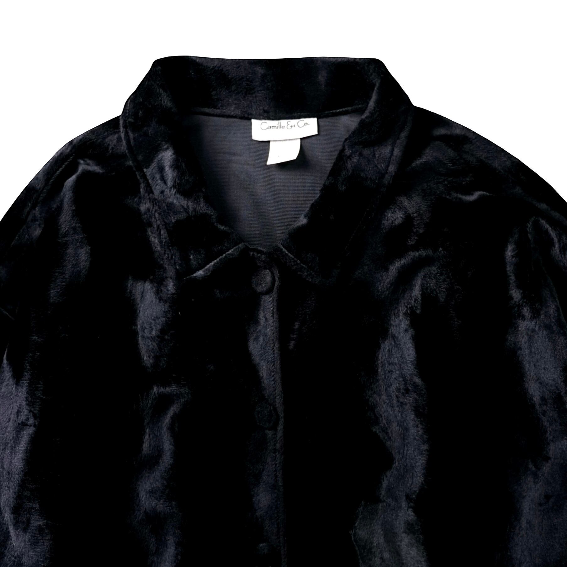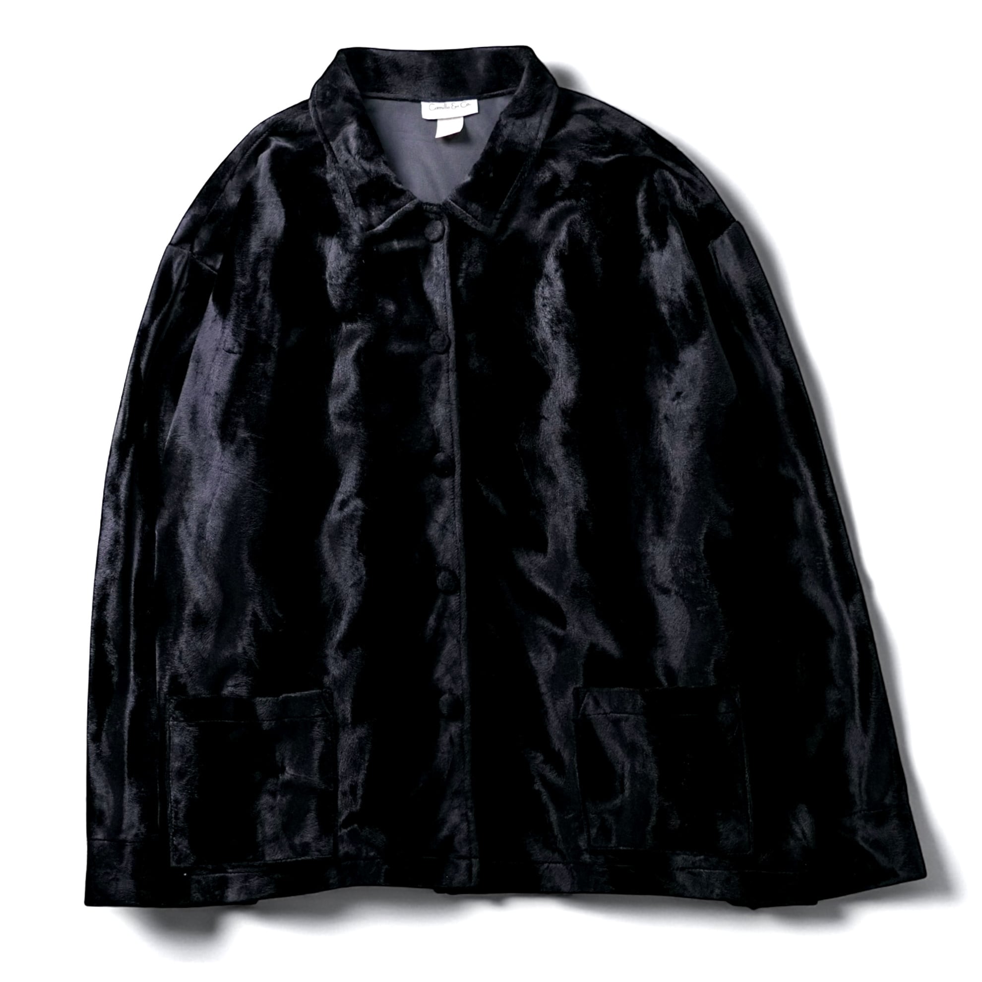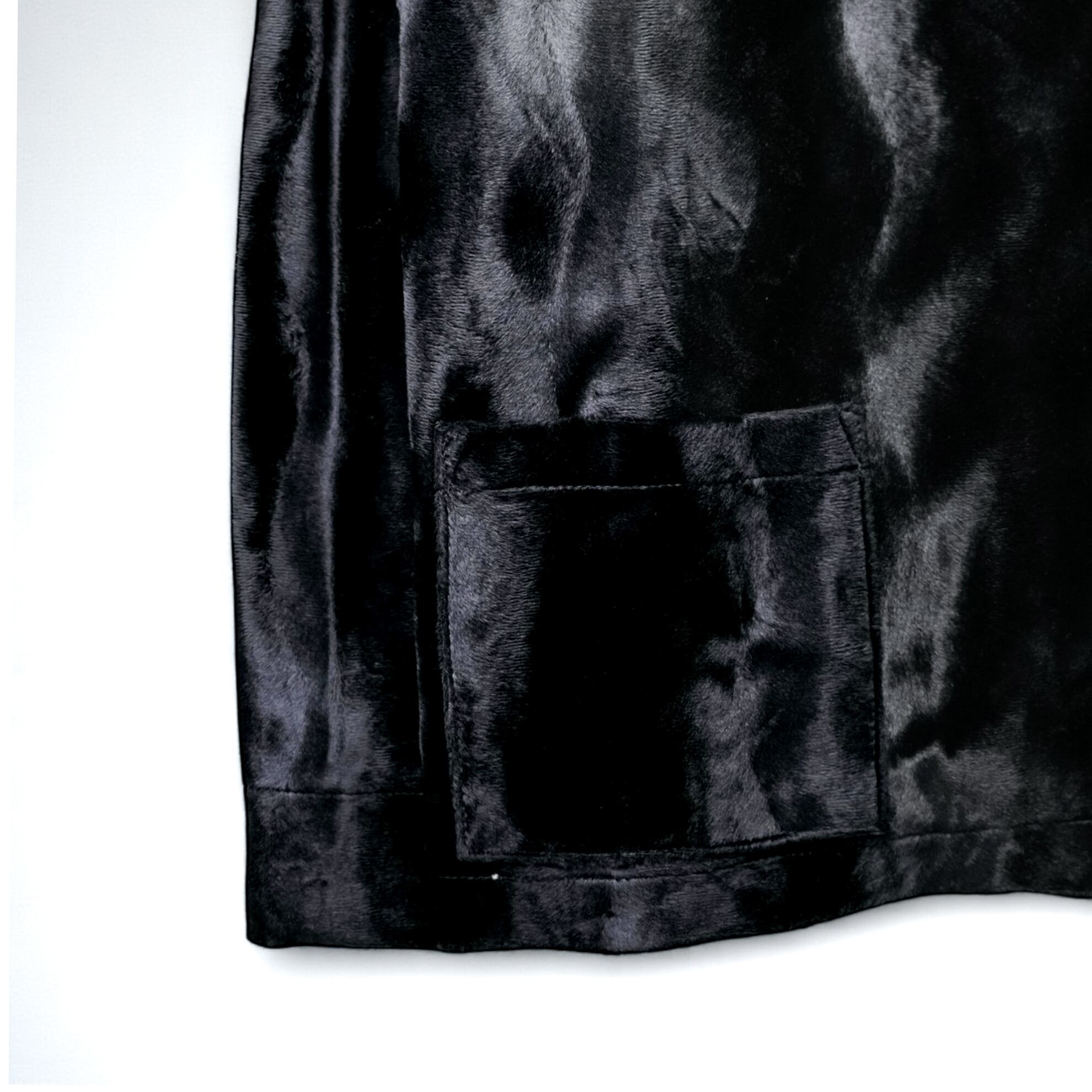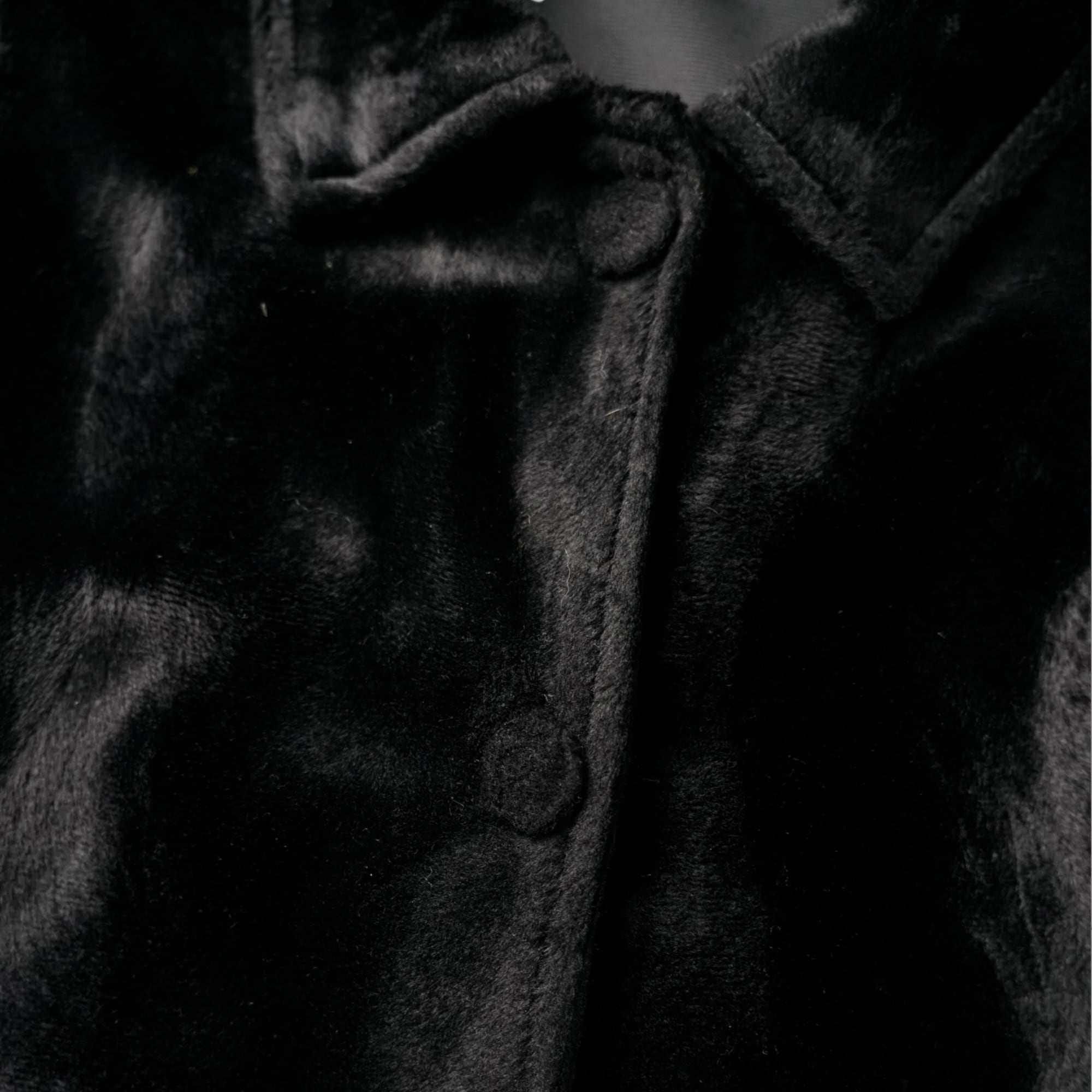 深い黒が波打つように艶めく、“ベルベットとフェイクファーの中間” とも言える唯一無二のタッチ。
