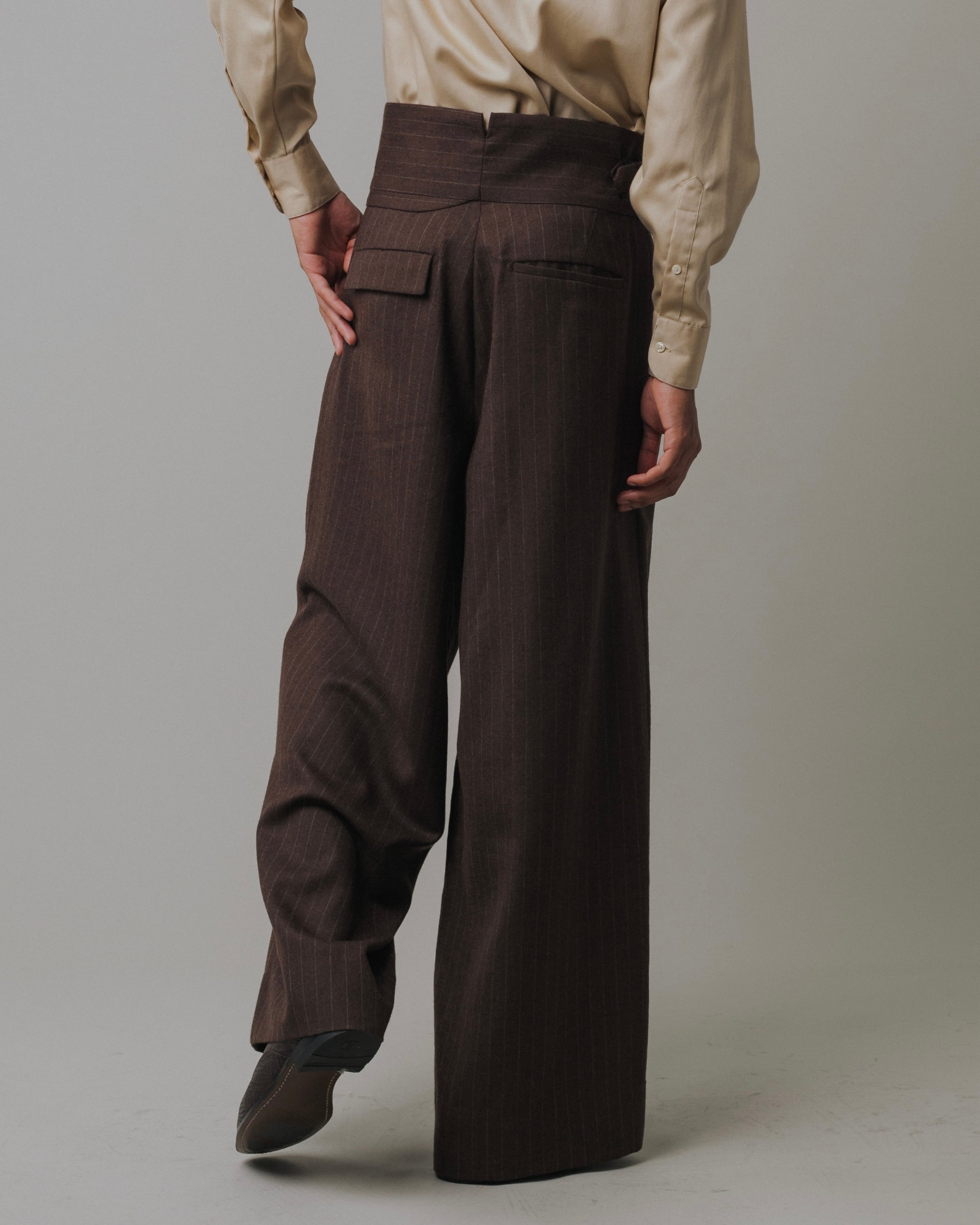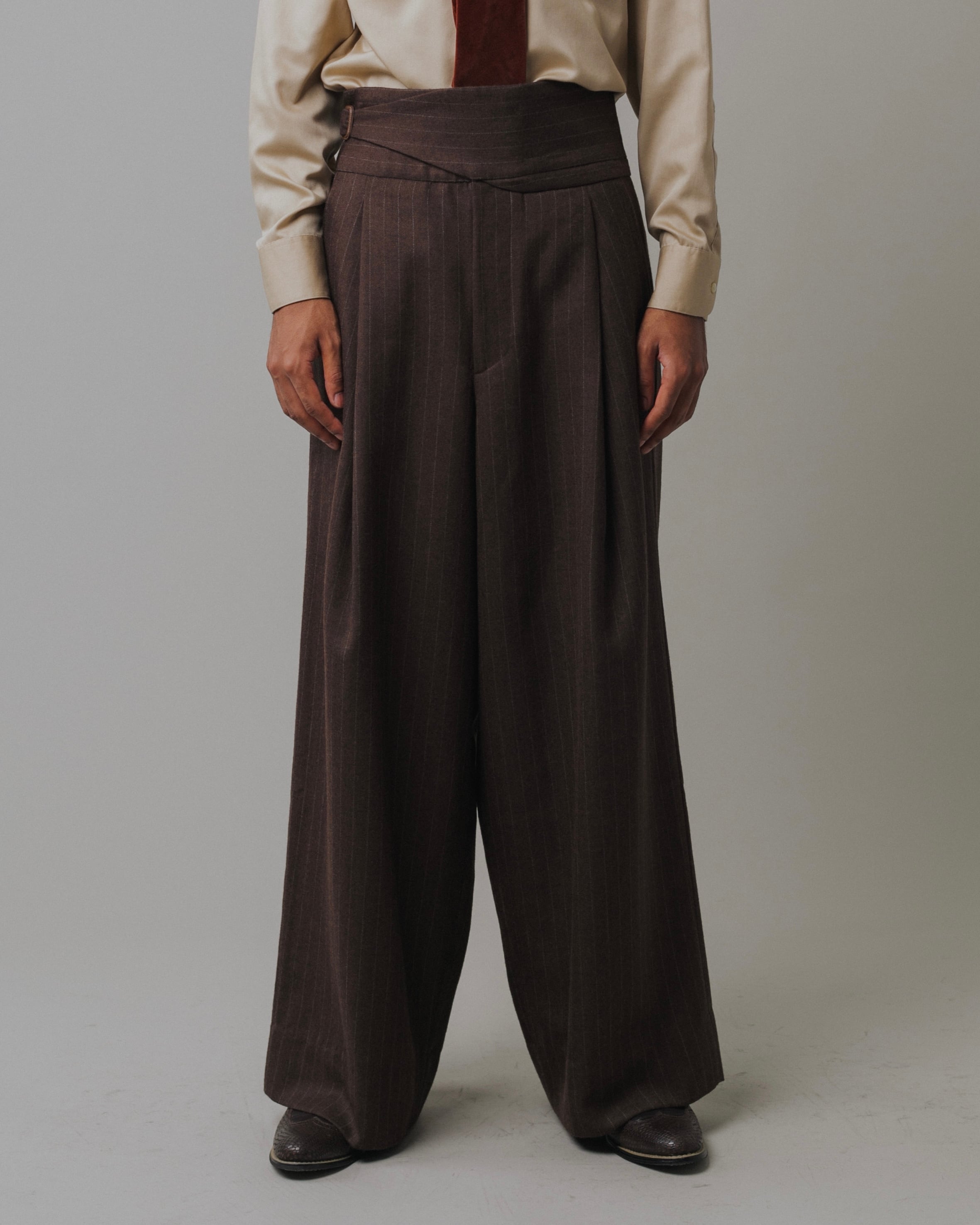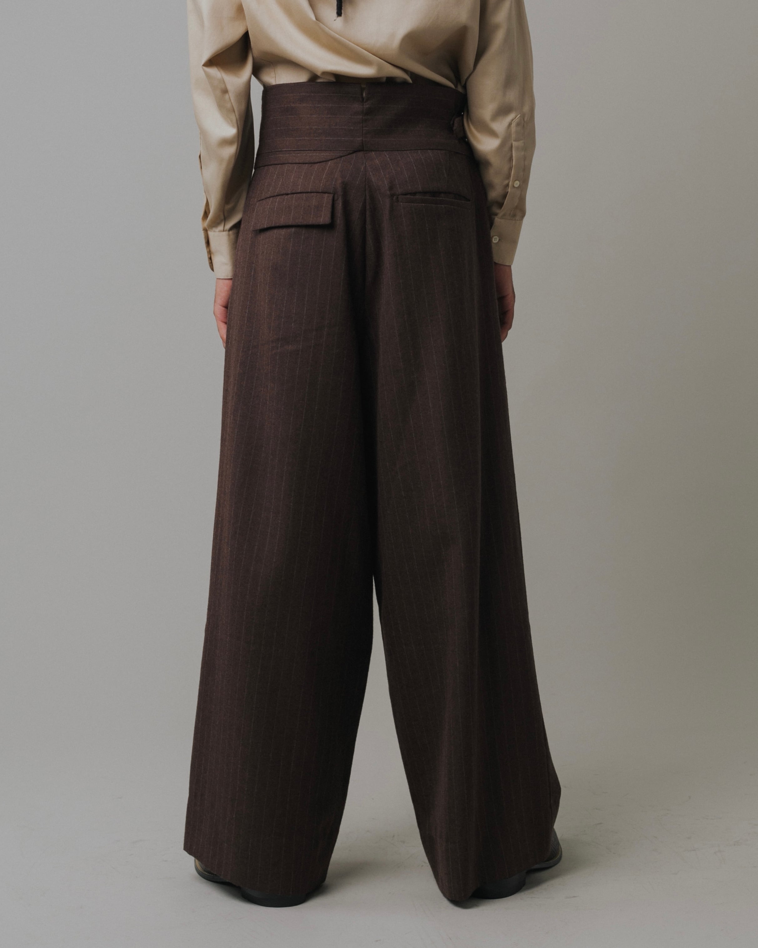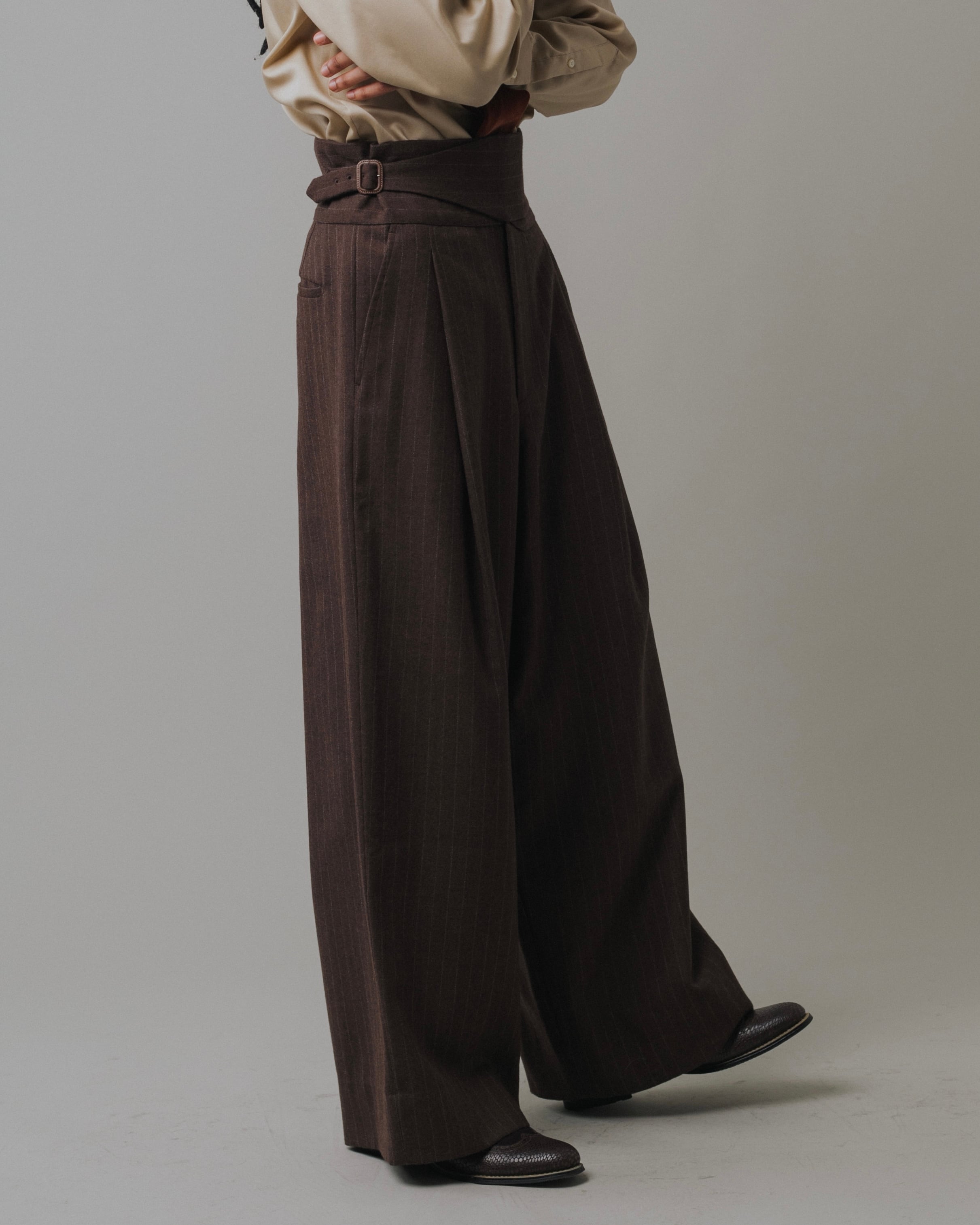 WOOL STRIPED WIDE SLACKS "BROWN"