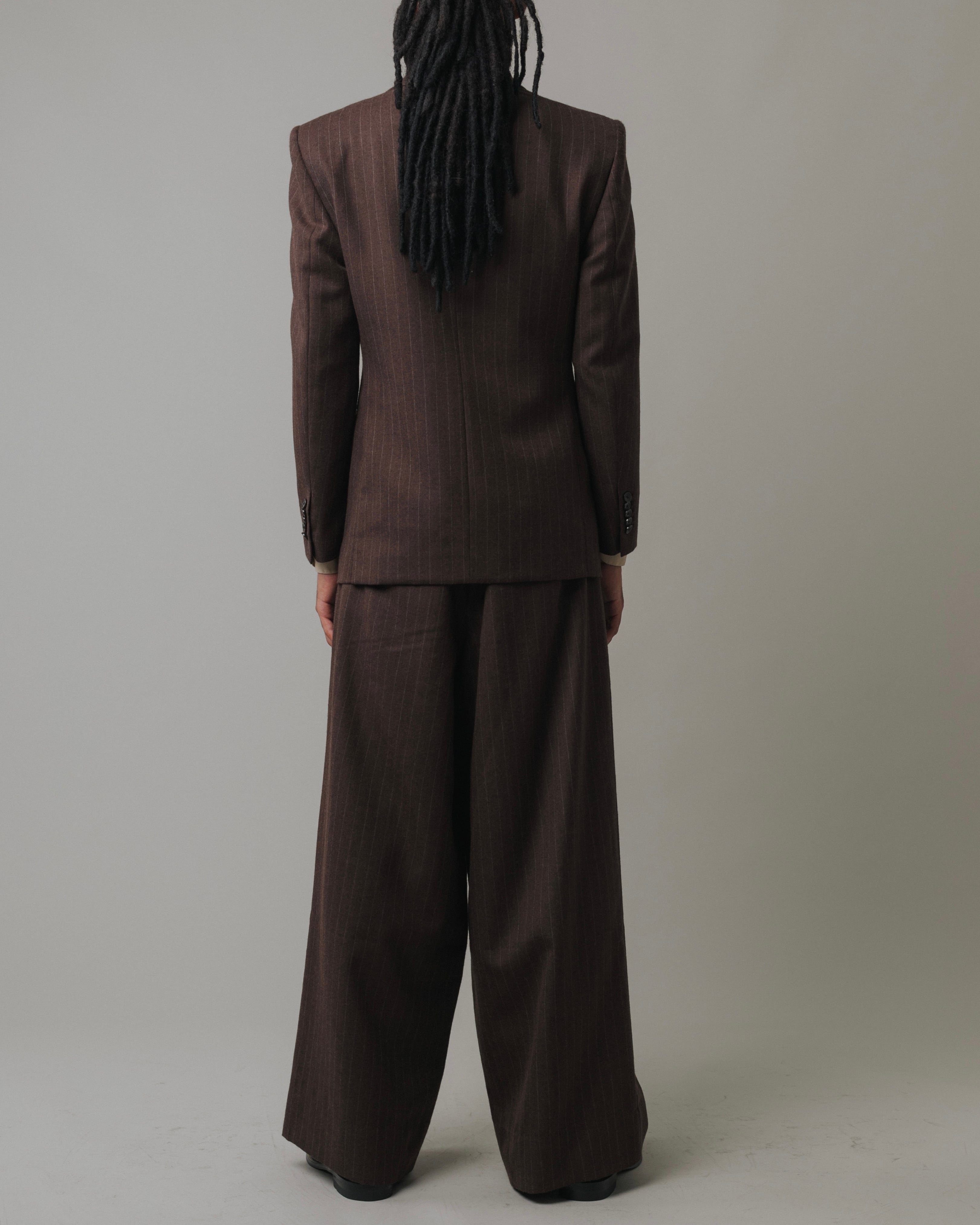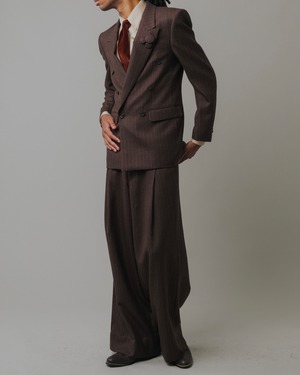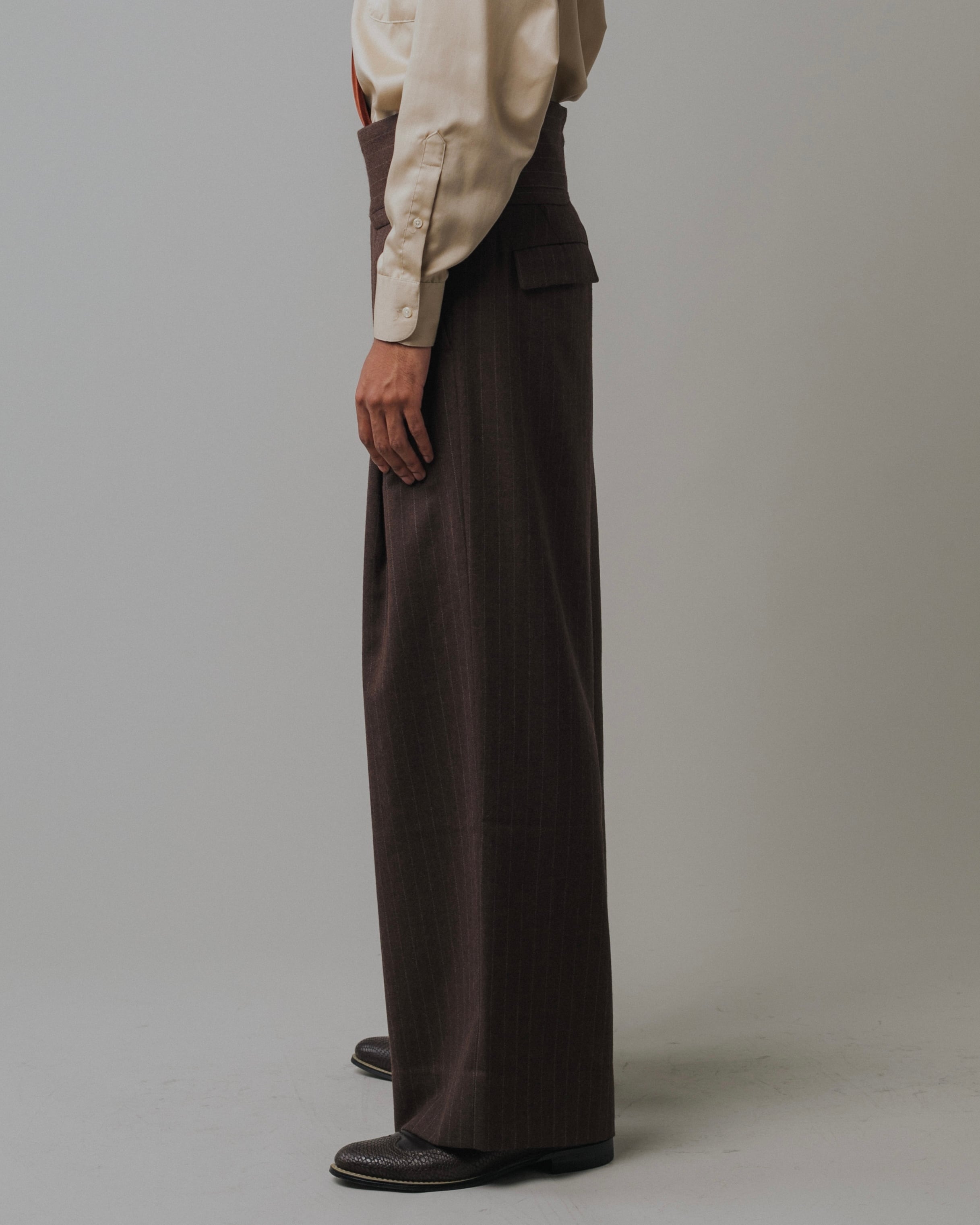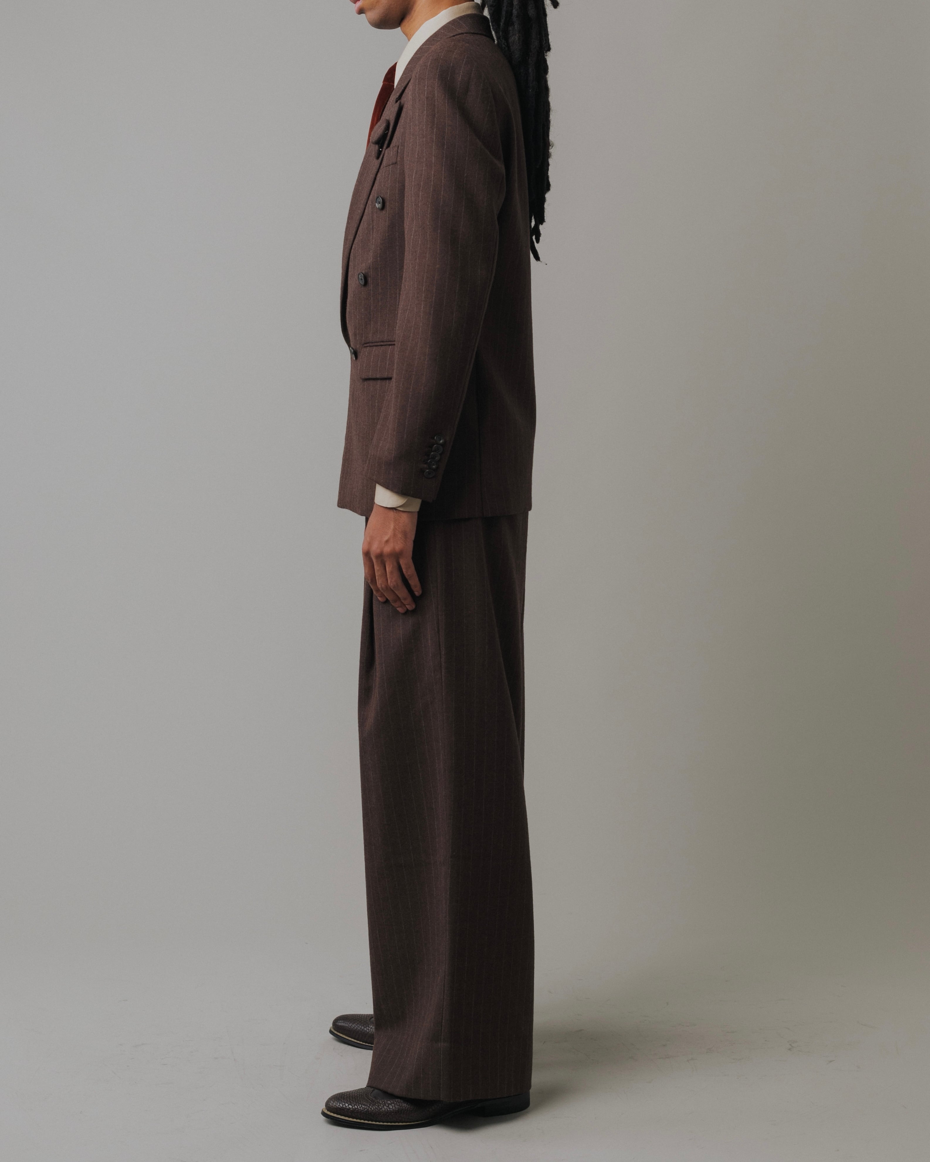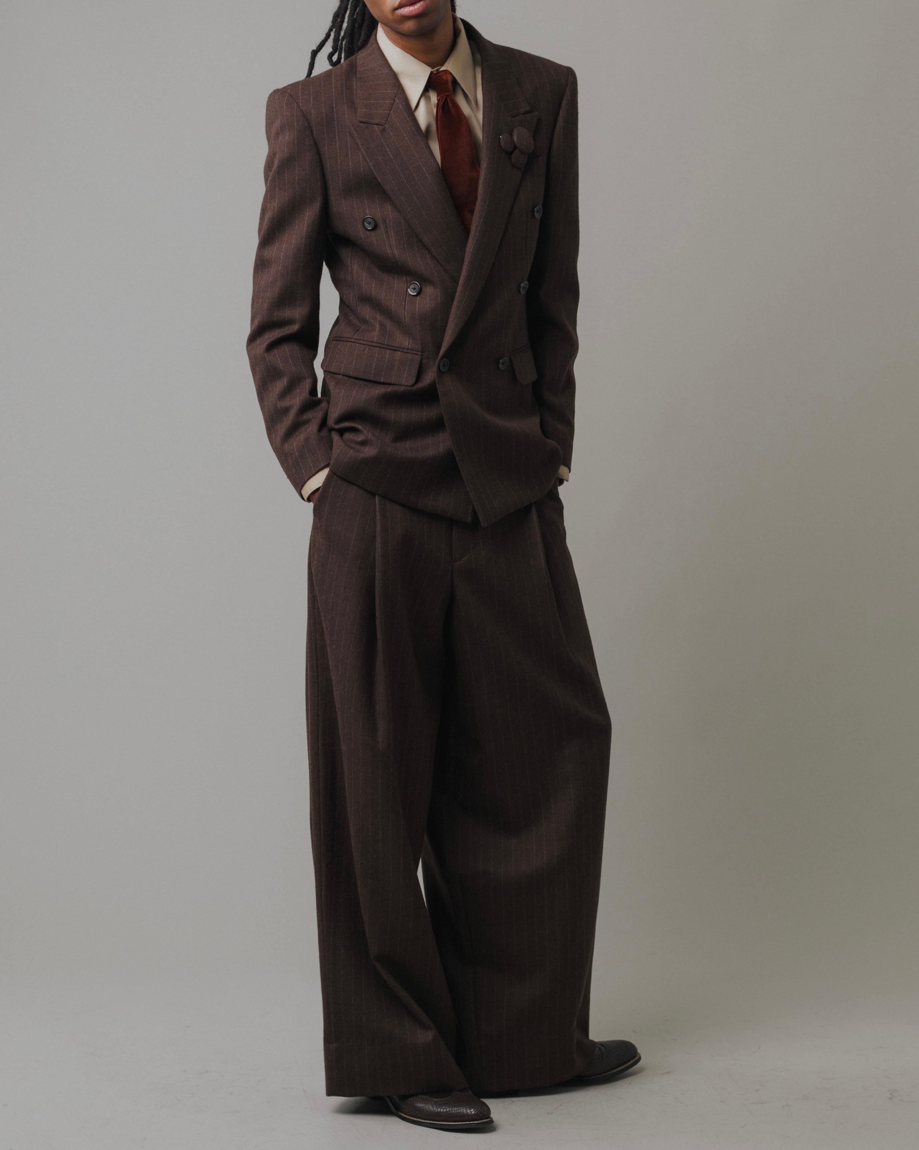 WOOL STRIPED WIDE SLACKS "BROWN"