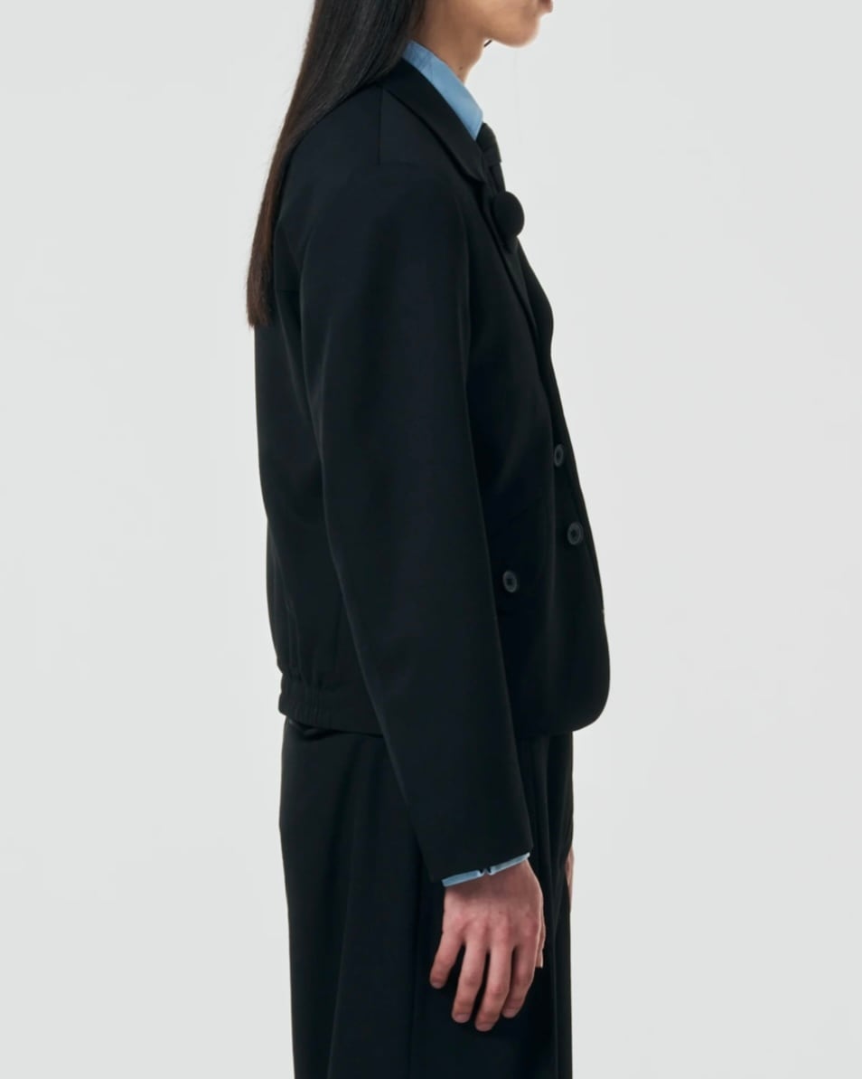 ブルゾンのように軽やかでありながら、着丈やバランスをミリ単位で制御することで、テーラードとしての説得力を確保しました。