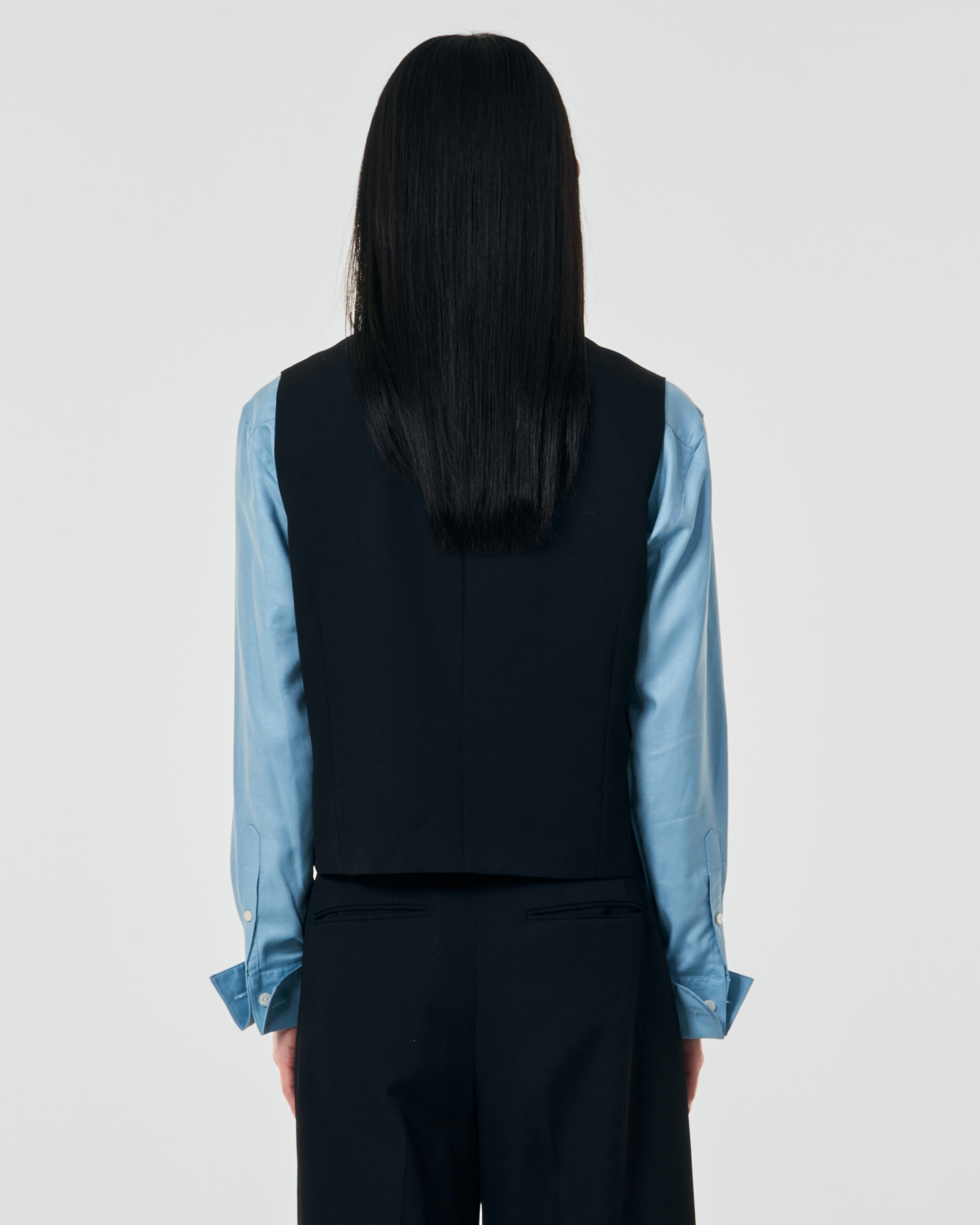 比翼仕立てにより、フロントのボタンや胸ポケット、後ろ身頃の切り替えを排し、