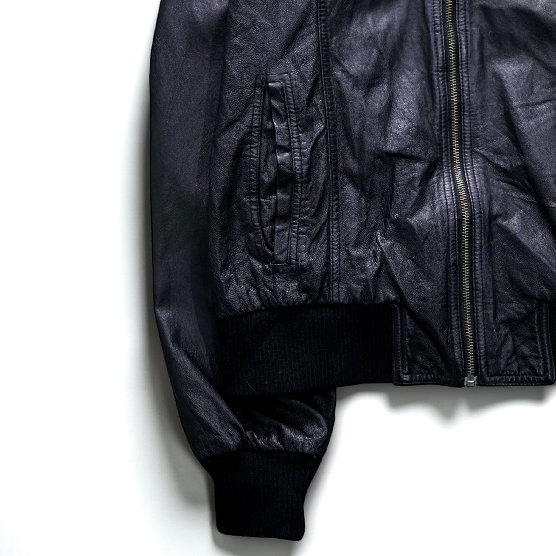 柔らかく馴染んだリアルレザーが身体に沿い、初めからアーカイブウェアのような雰囲気を纏える一着です。