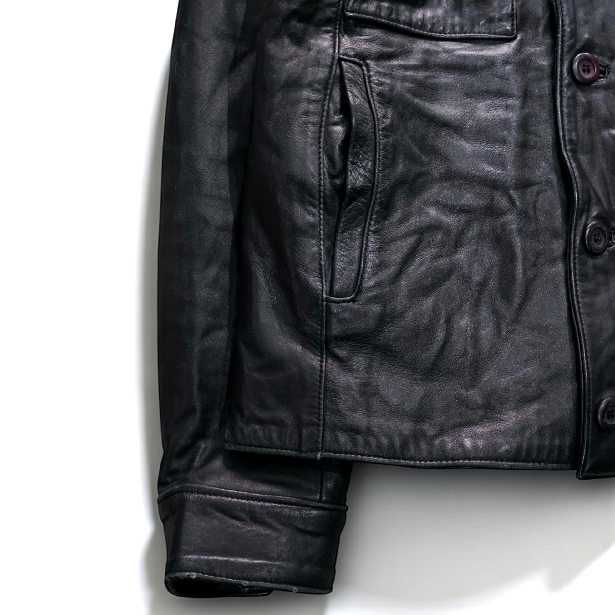 ブランド国としてのイタリアは70〜90年代に多数の高品質レザーウェアを生み出しており、その伝統に裏付けられた 質感・縫製・素材バランス が本作にも宿っています。