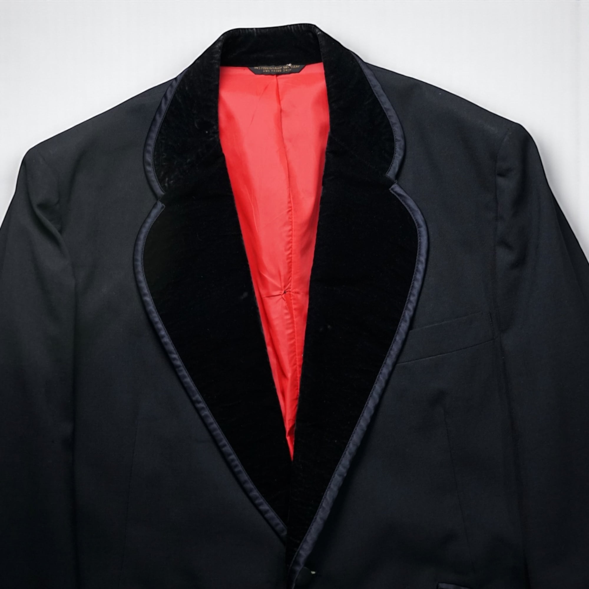 内側にはアイコニックなレッドサテンライニングを採用し、羽織った瞬間に存在感が際立つドラマティックな仕上がり。