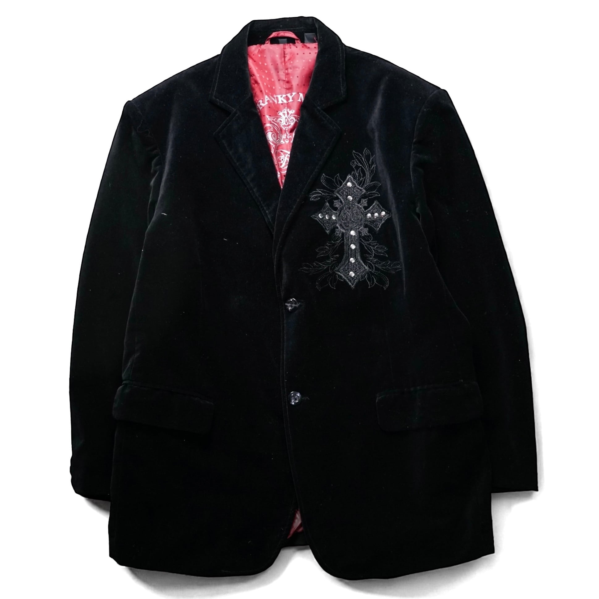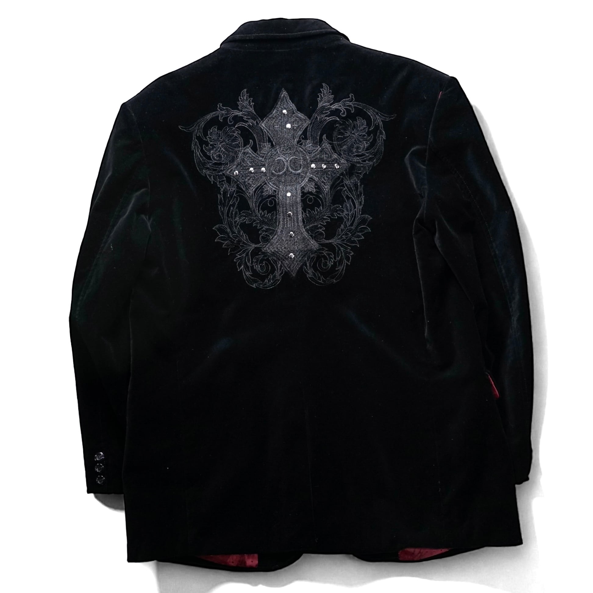 ベルベット特有の奥行きある艶感、アートピースのような刺繍ワーク、重厚な佇まい。00’sらしい装飾美を閉じ込めた、唯一無二のテーラードジャケットです◎