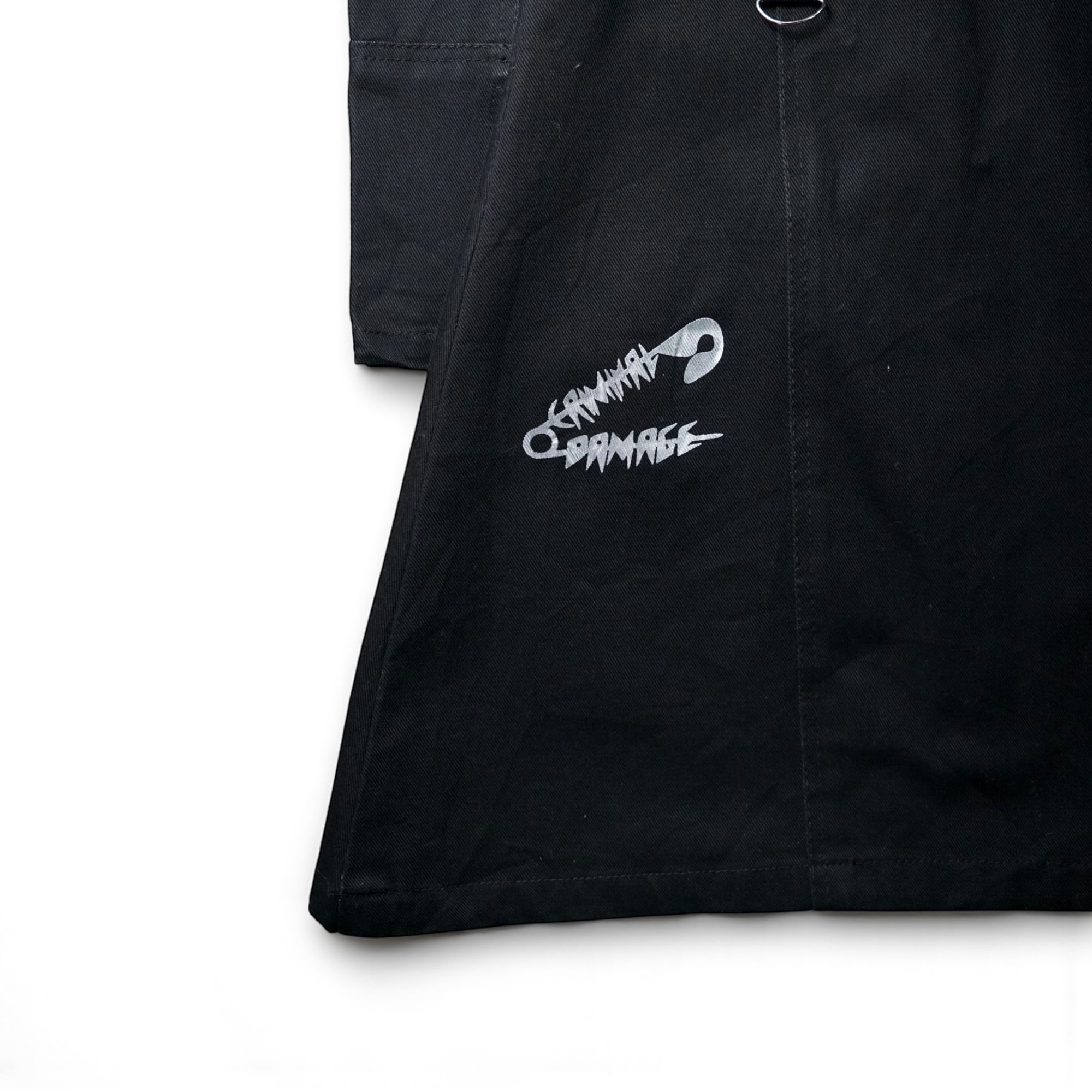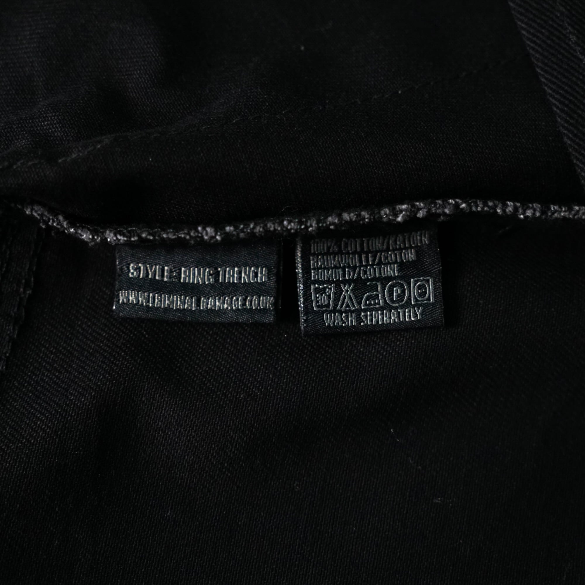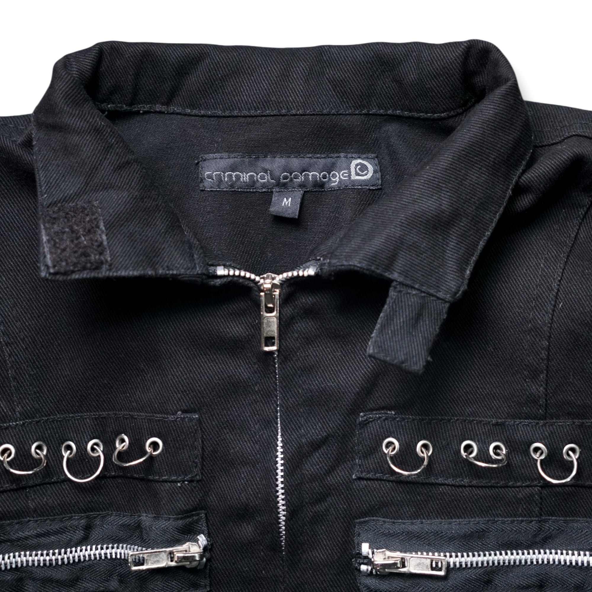 Early 2000sのストリート × パンクムードを色濃く残す "Criminal Damage" のヴィンテージ・ボンデージデザインZIPロングコート。
