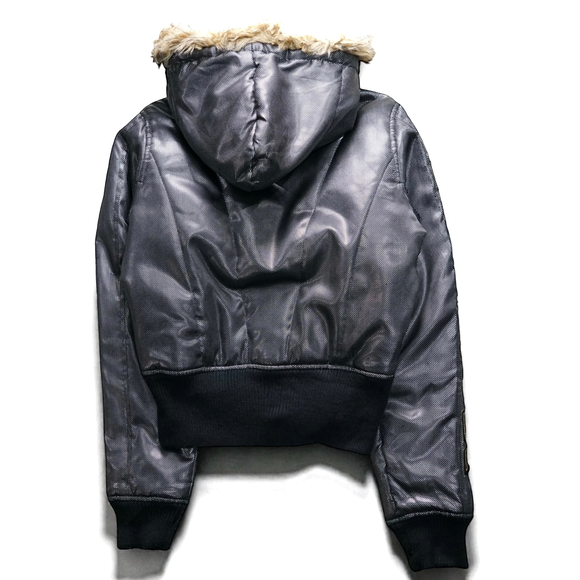 グレーがかったガンメタリックのボディは、わずかに光沢を帯びたマイクロドットパターンが織りなす質感で、Y2Kストリート特有の“ギラつき”を品よく再現。