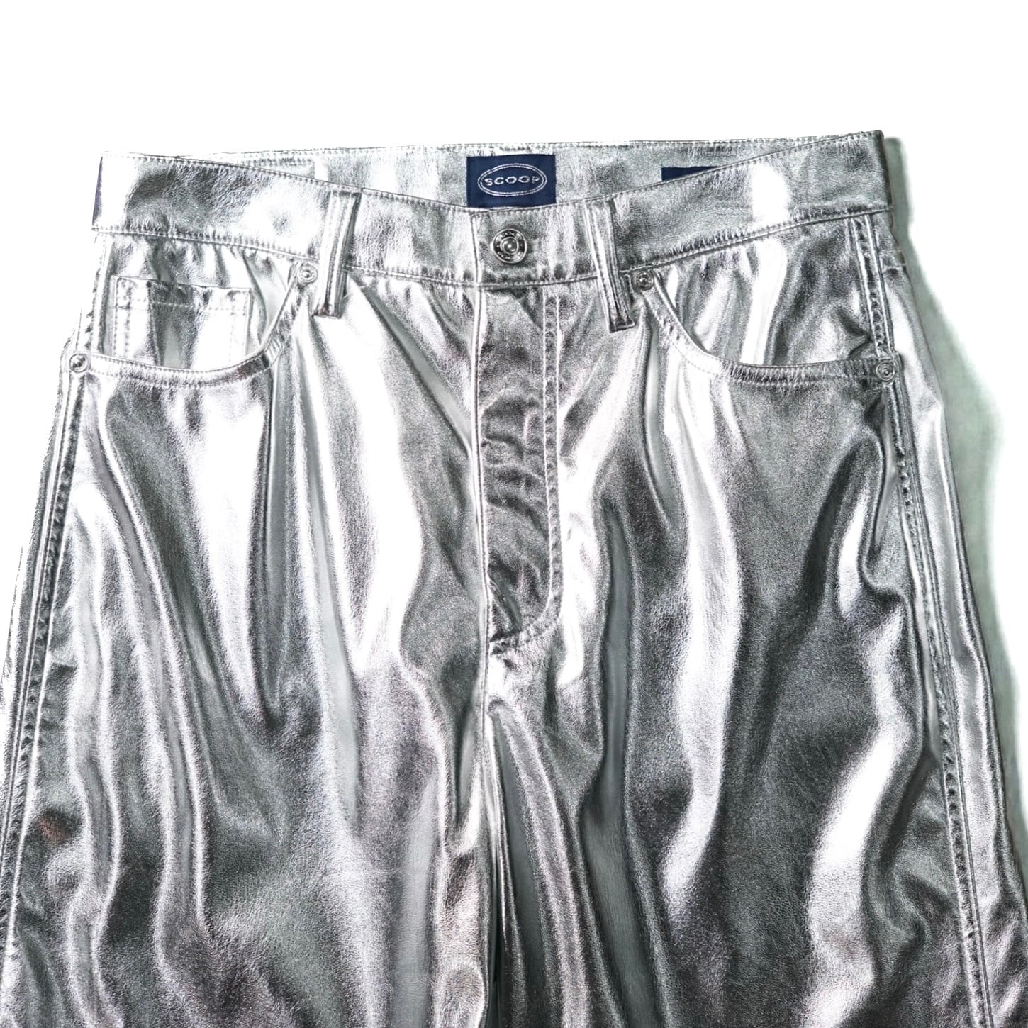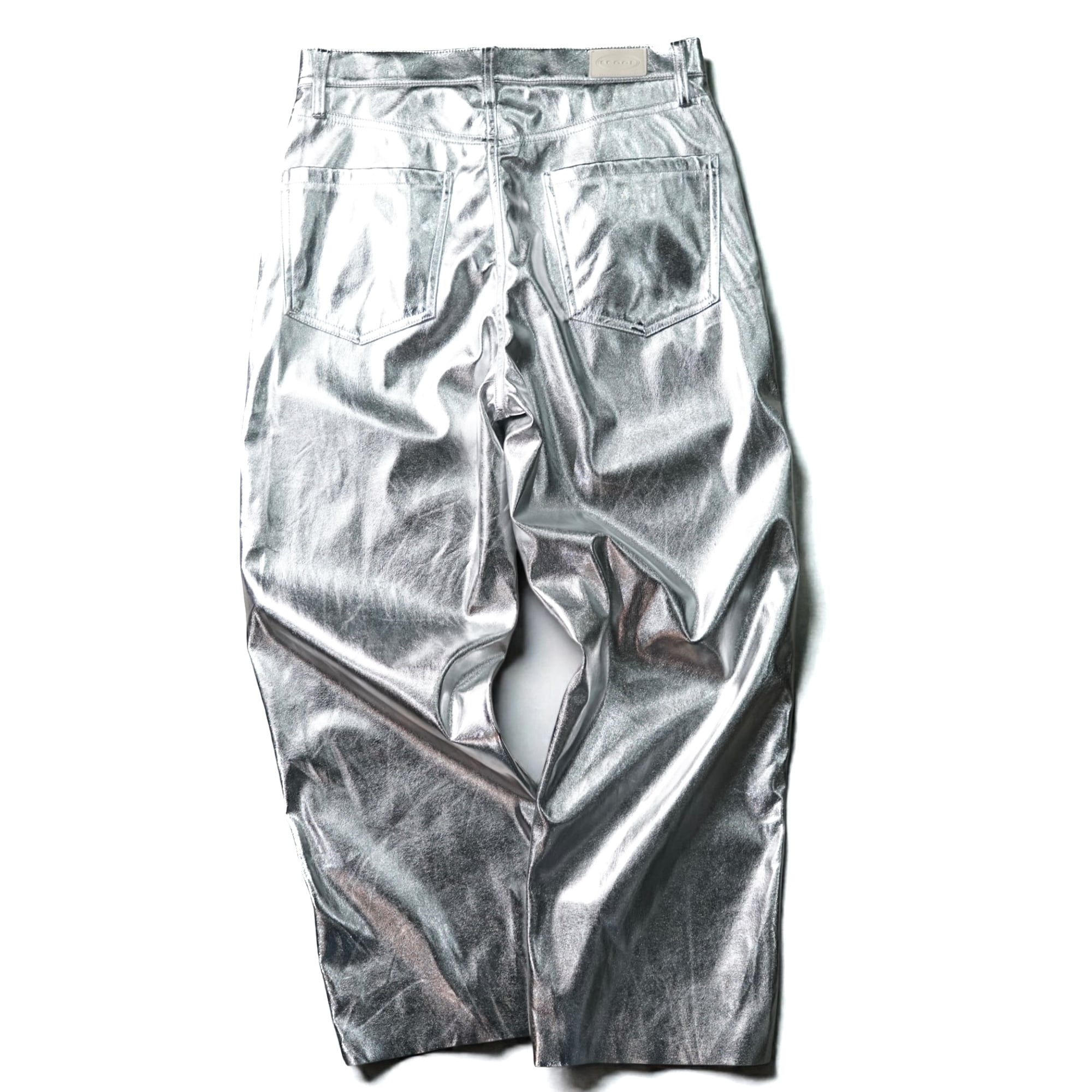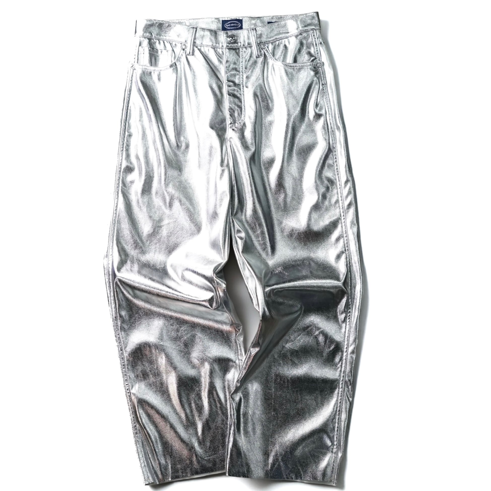 視覚的インパクトが圧倒的な、シルバーコーティング生地を用いたヴィンテージパンツ。