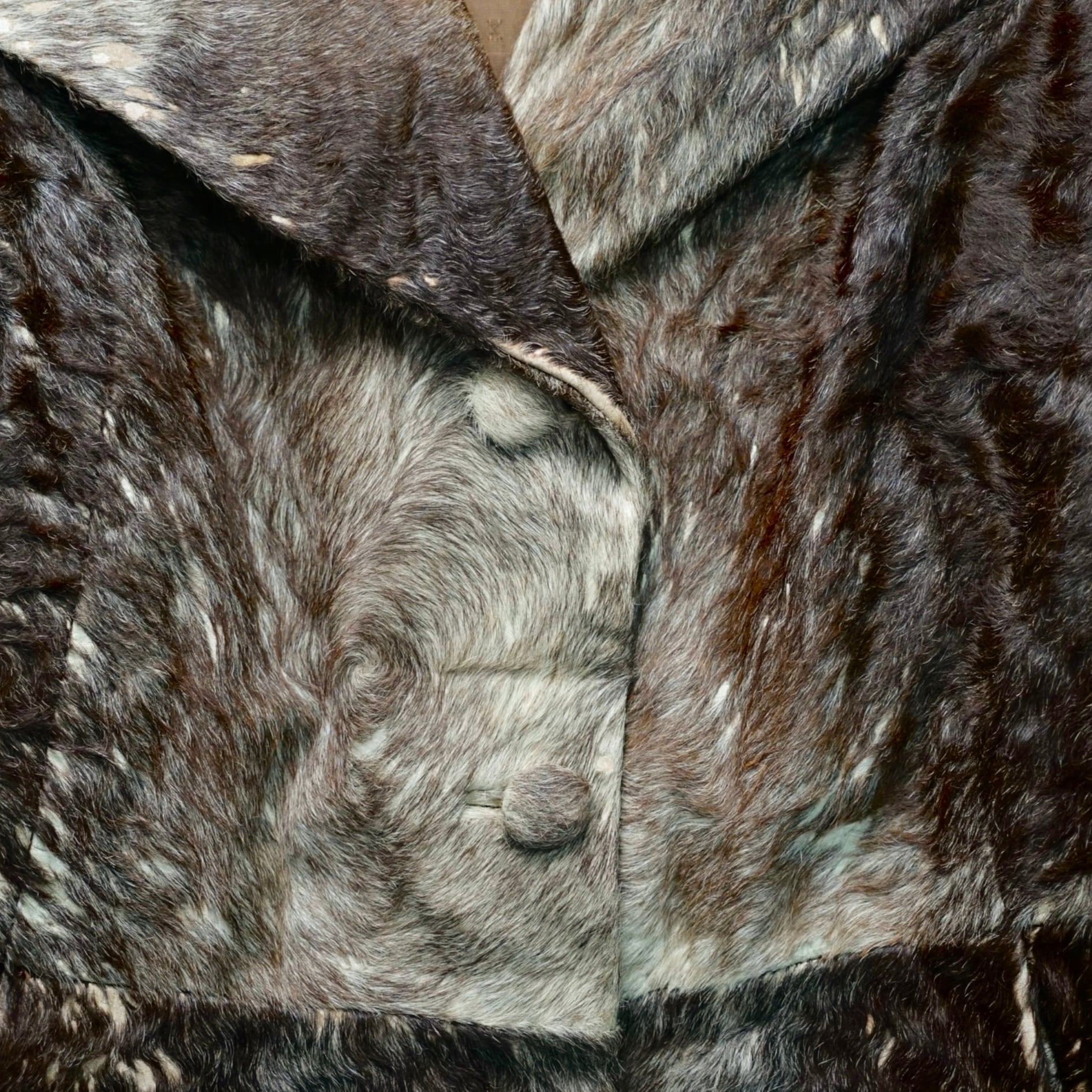 1960年代後期〜70年代初期に製作された、希少なハラコ(Hair-on Leather)を贅沢に使用したヴィンテージ・ダブルブレストコート。