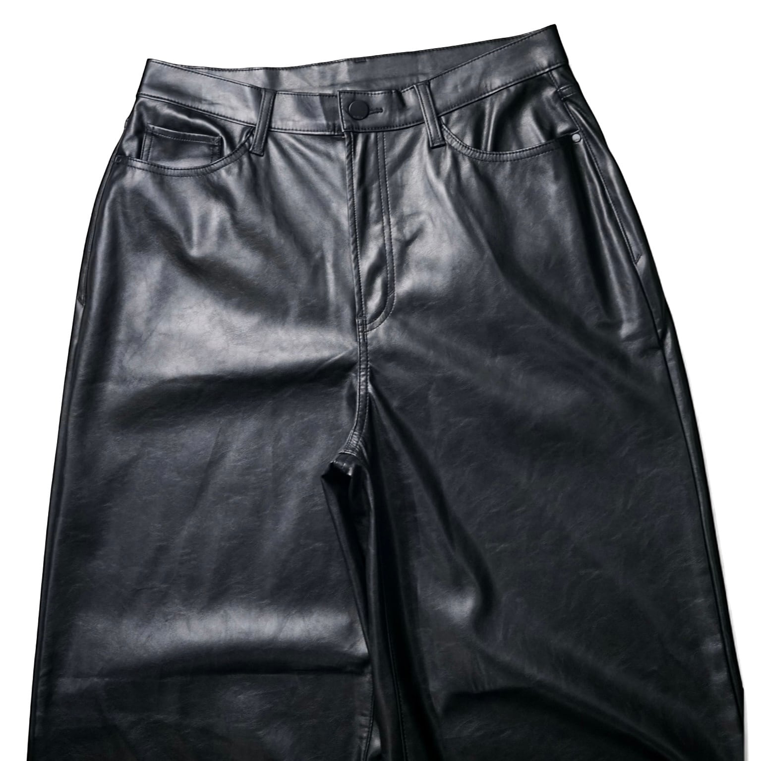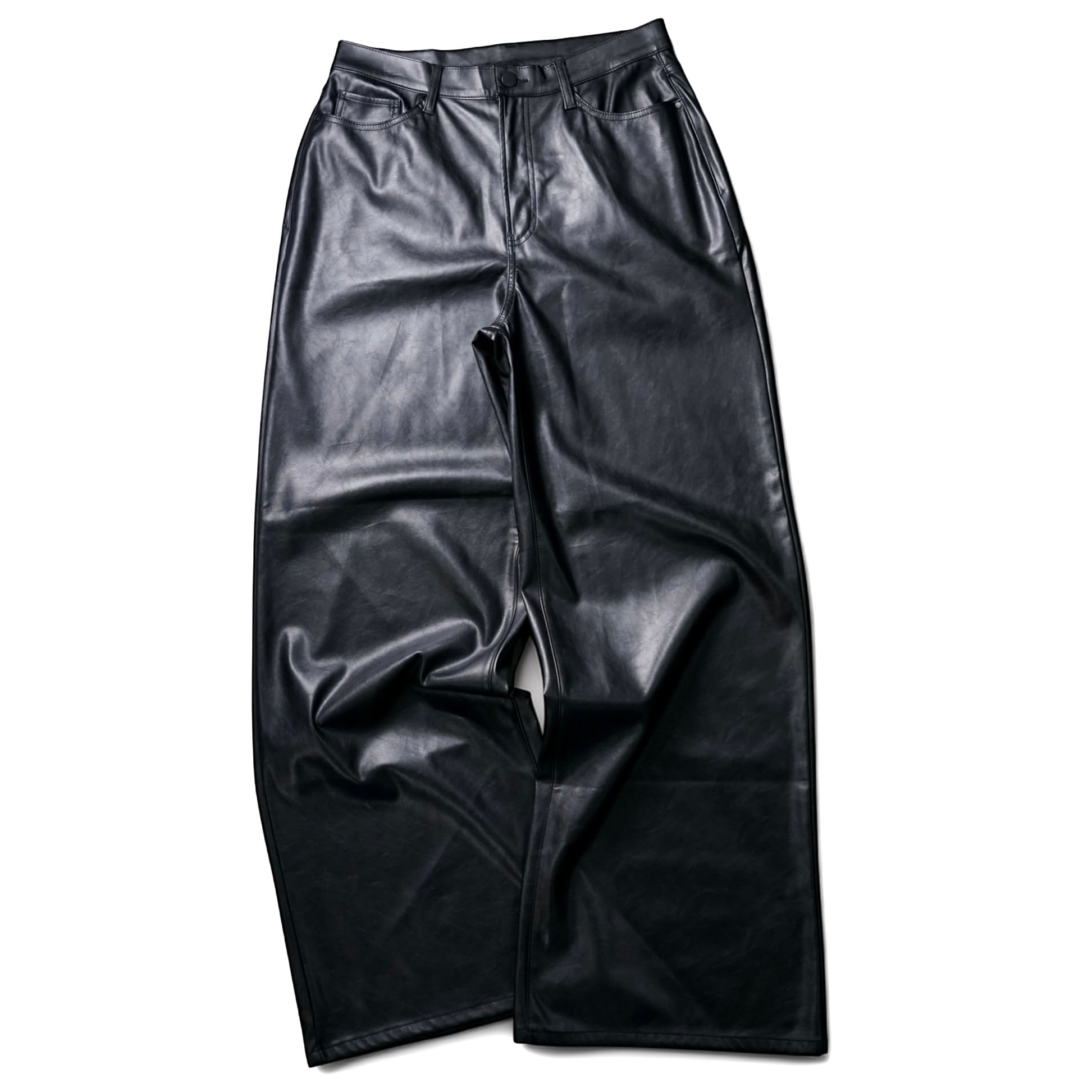 光沢を抑えたマットな質感が特徴のフェイクレザーバギーパンツ。