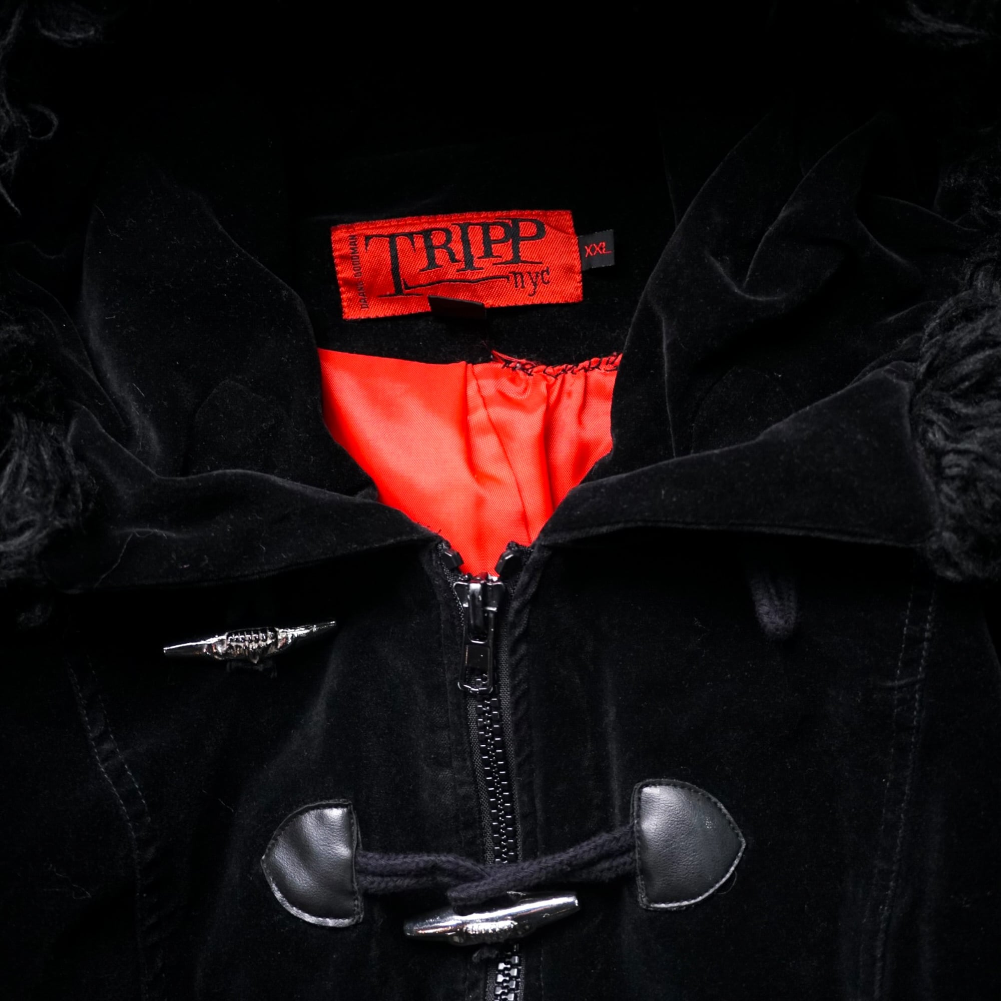 トゥルーゴシック/パンクを象徴する NY発 "TRIPP NYC " から、アーカイブでもほぼ出回らない ベルベット × メタルトグル × ファーフード のスペシャルピースが入荷。
