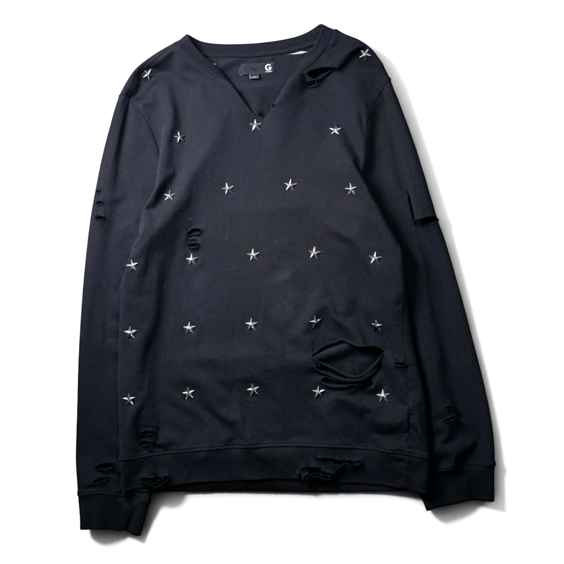 ブラックボディにスター型スタッズをランダムに配置したデザインスウェット。