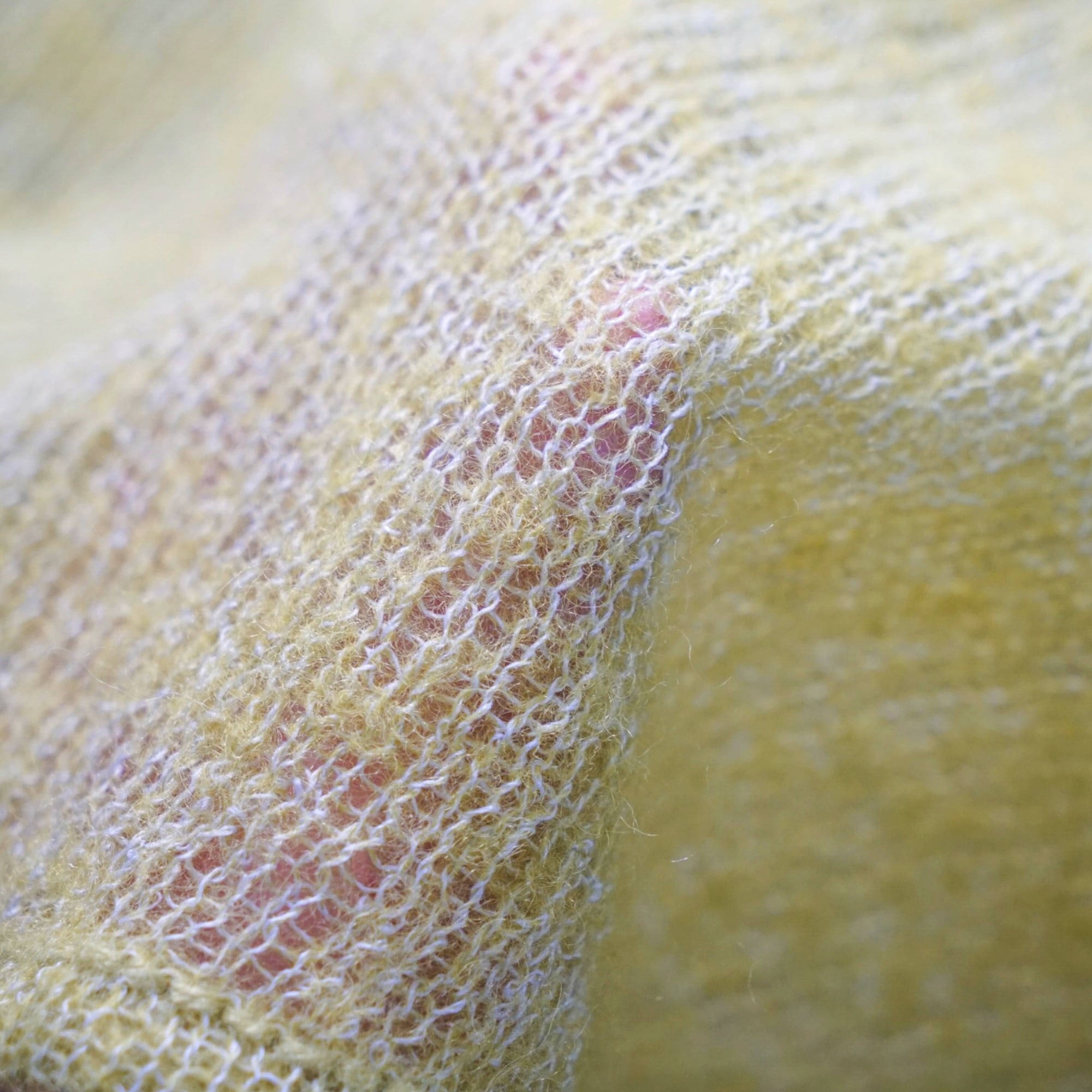 スタイリングに鮮やかなアクセントを加えながらも、透け感のある編み地によってどこか柔らかな印象を与えます。