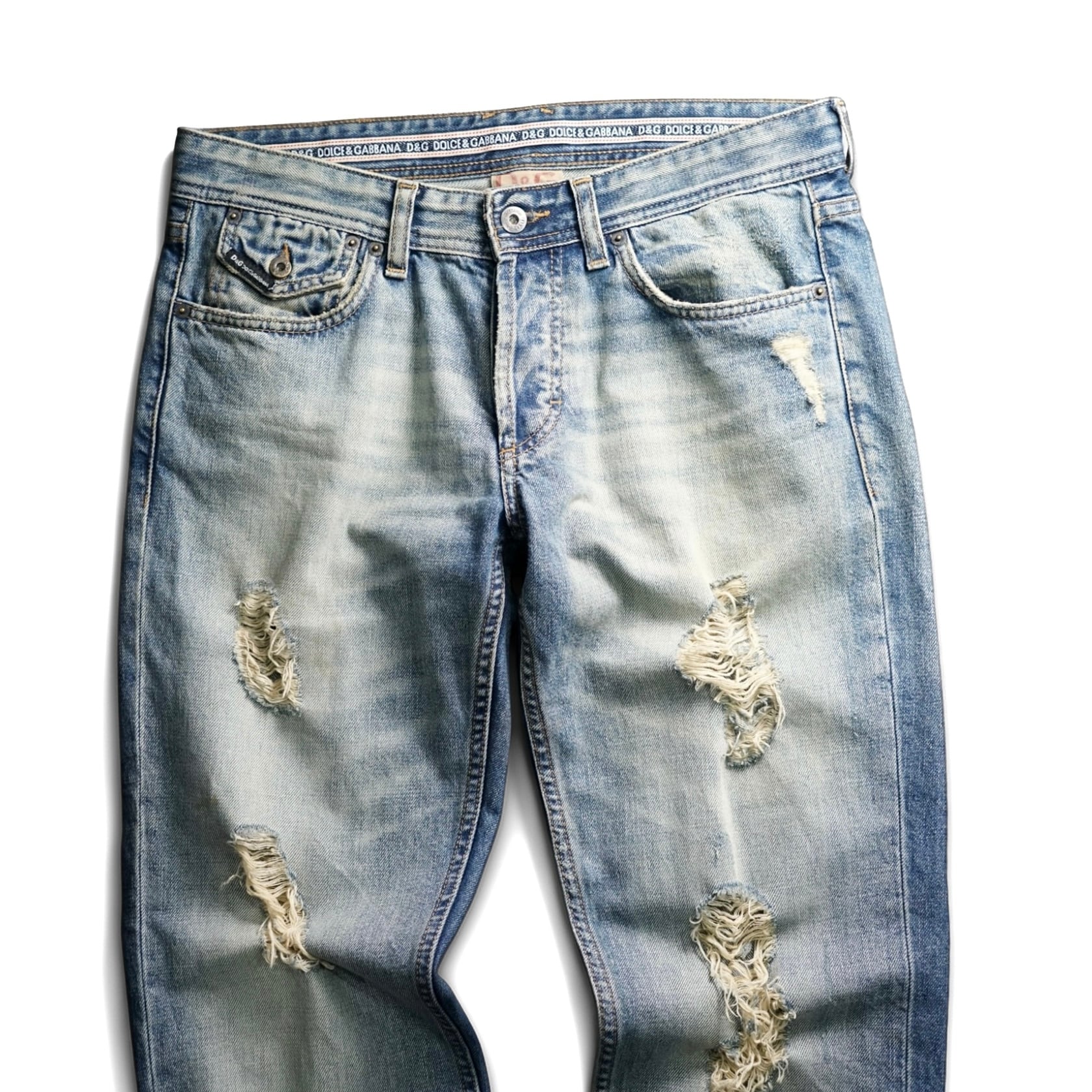 Dolce & Gabbanaのセカンドライン “D&G” より、ブランドらしい攻めた加工感が魅力のダメージデニム。