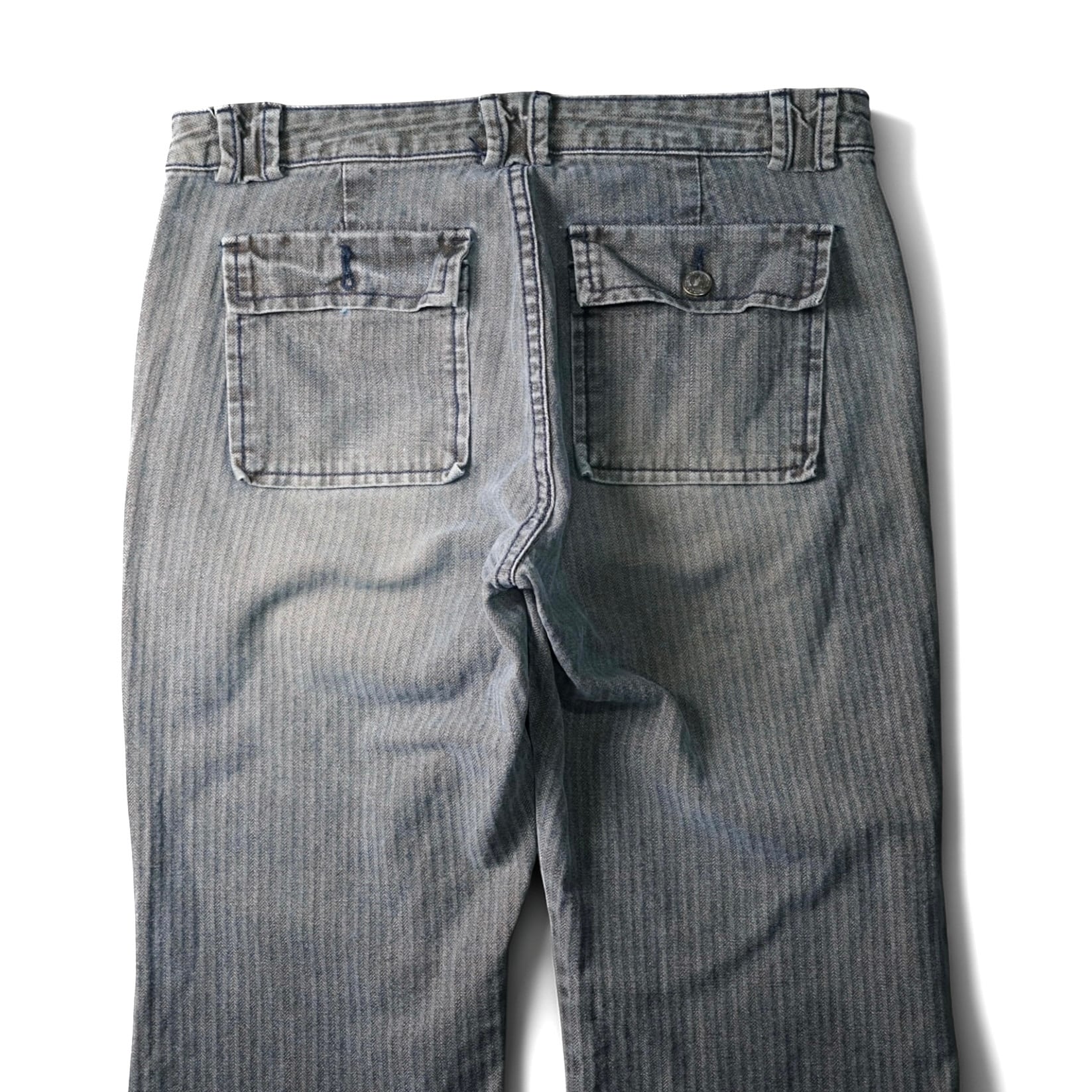 ヘリンボーン織で仕立てられた希少なデニムパンツ。