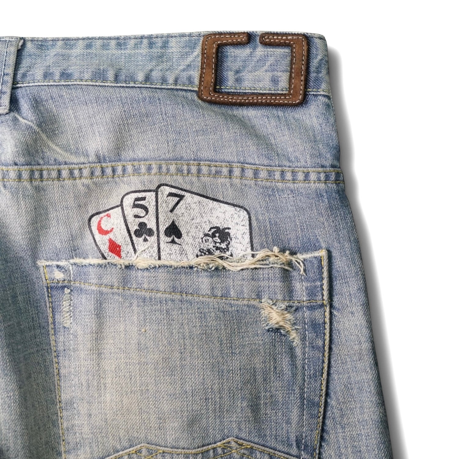 デニム本来の奥行きがしっかりと表現されており、プリントとのコントラストがより際立つ個体です。