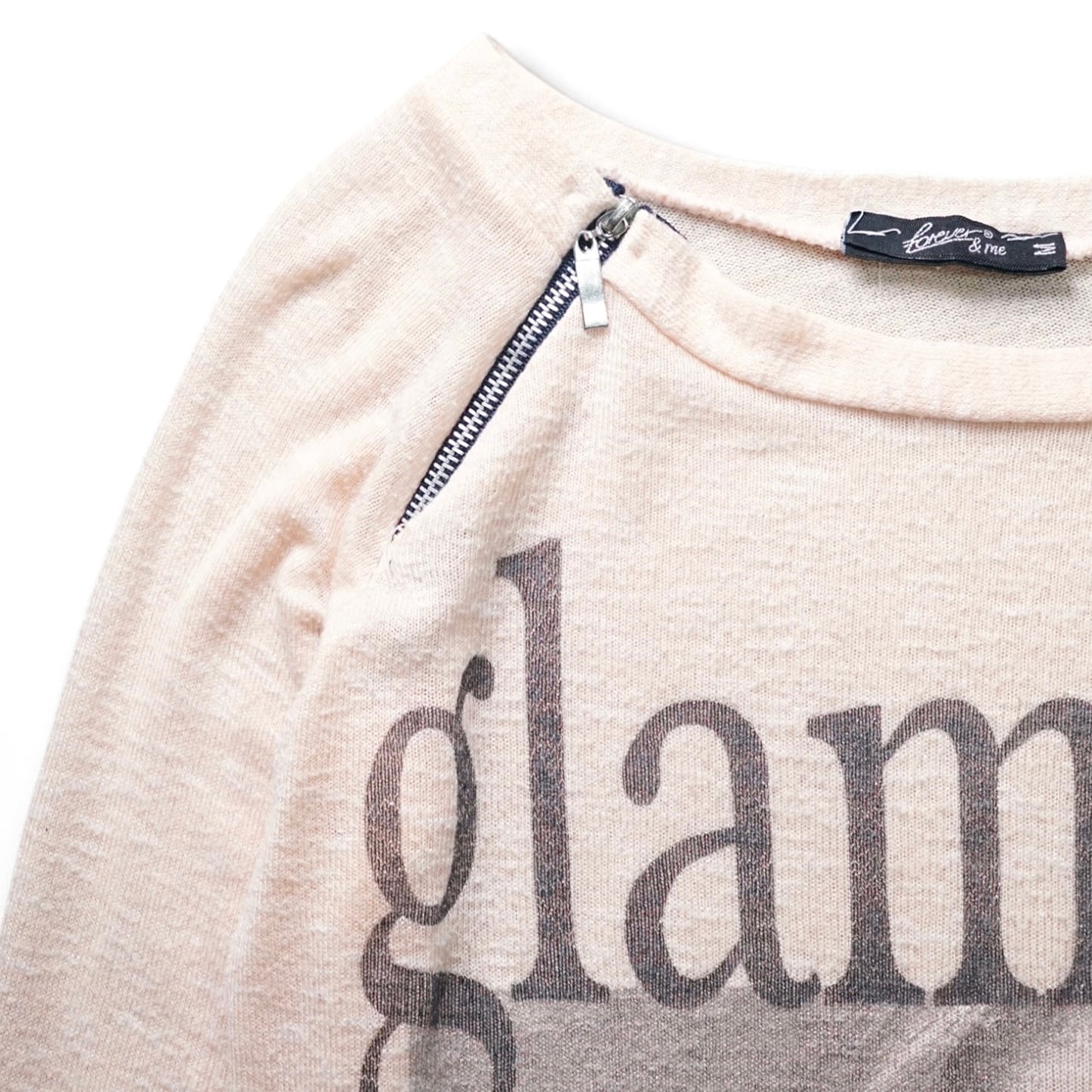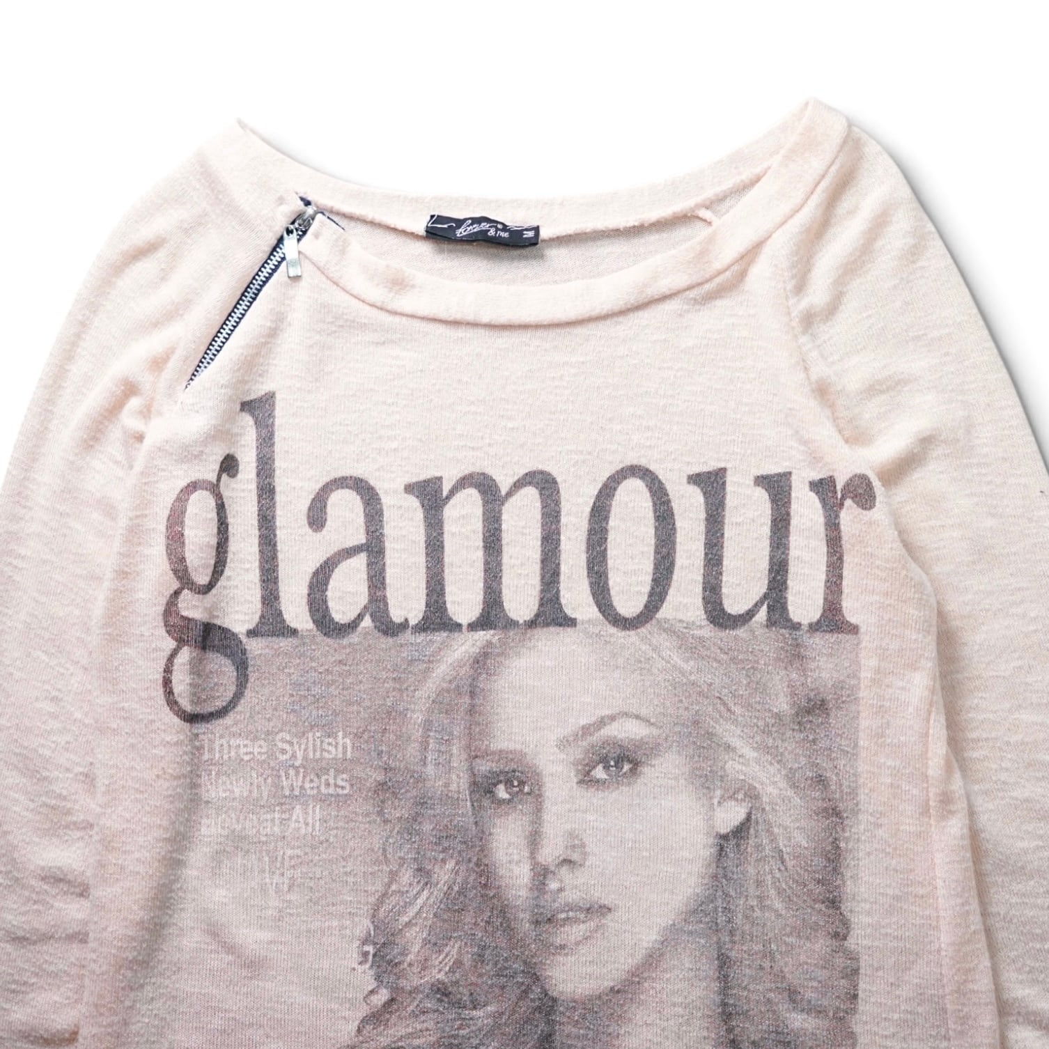 “glamour”のグラフィックが大胆にプリントされ、ポートレートとレタリングが組み合わさった印象的なデザイン。