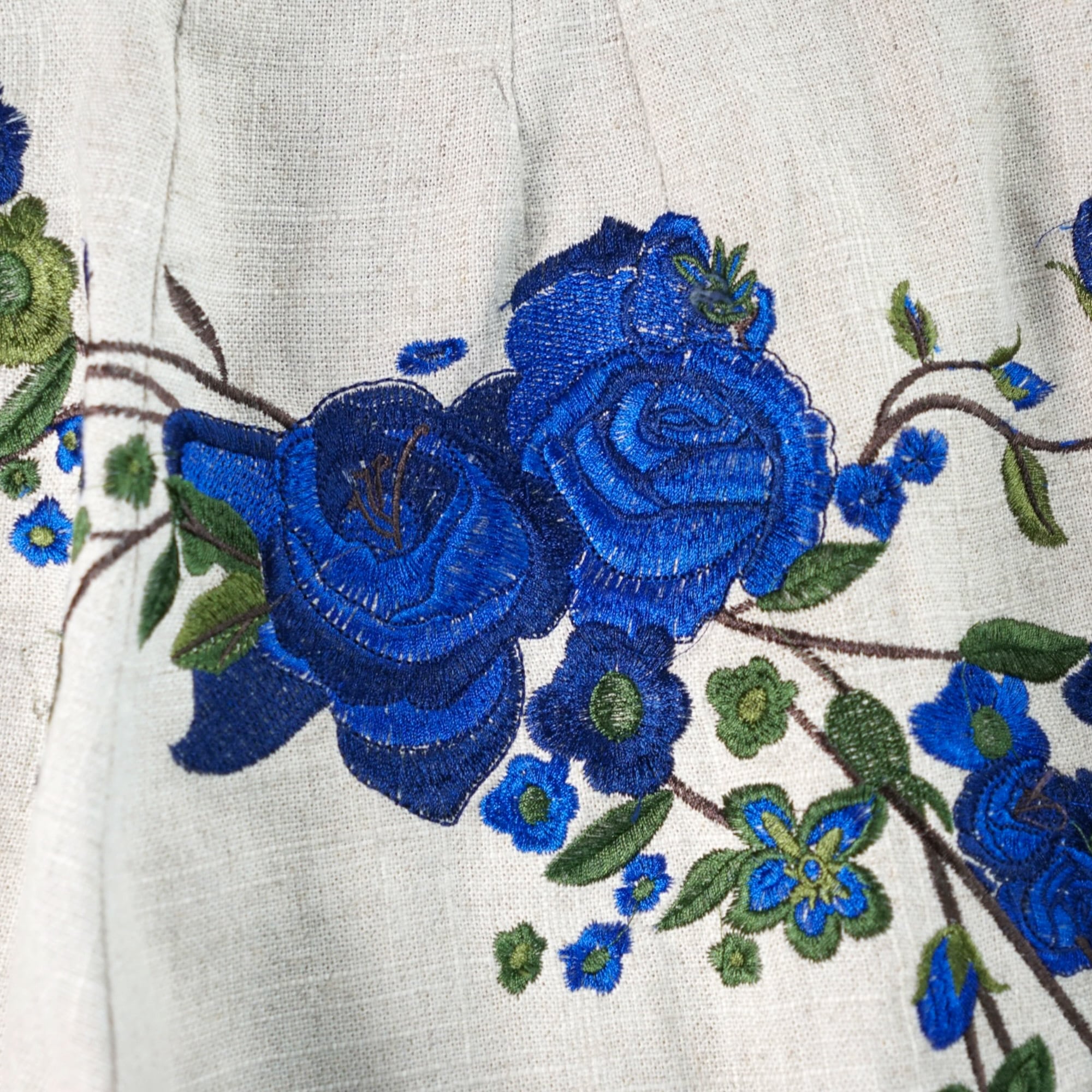 Vintage flower embroidery linen buggy slacks