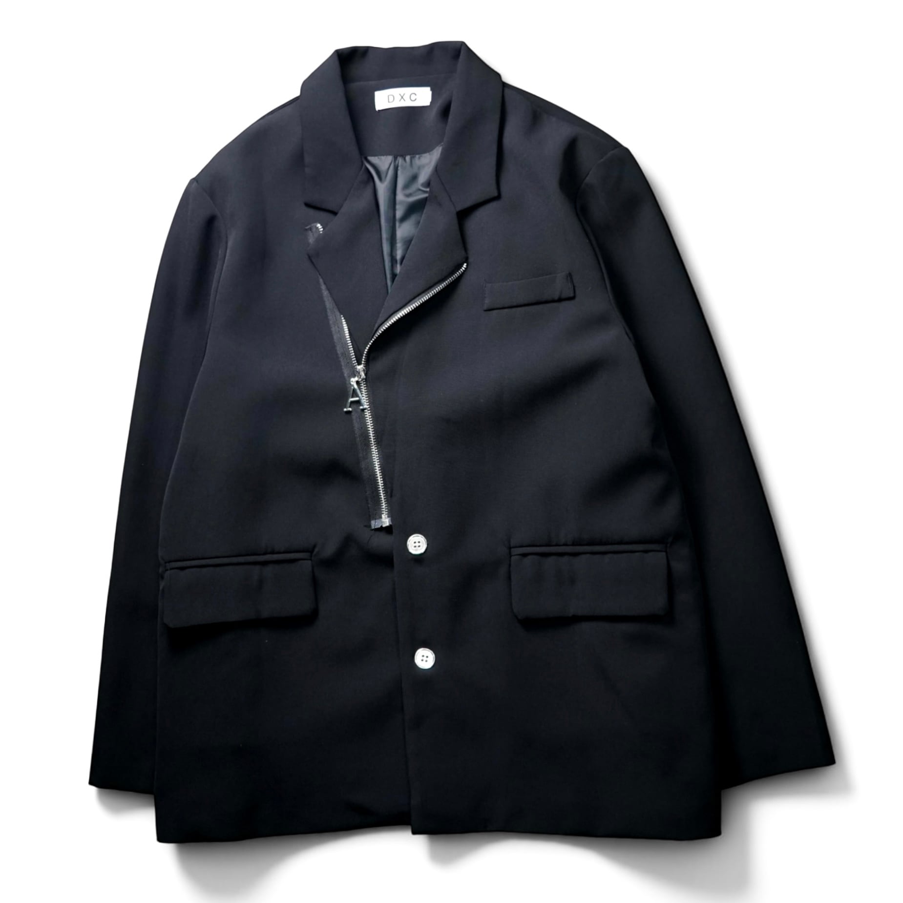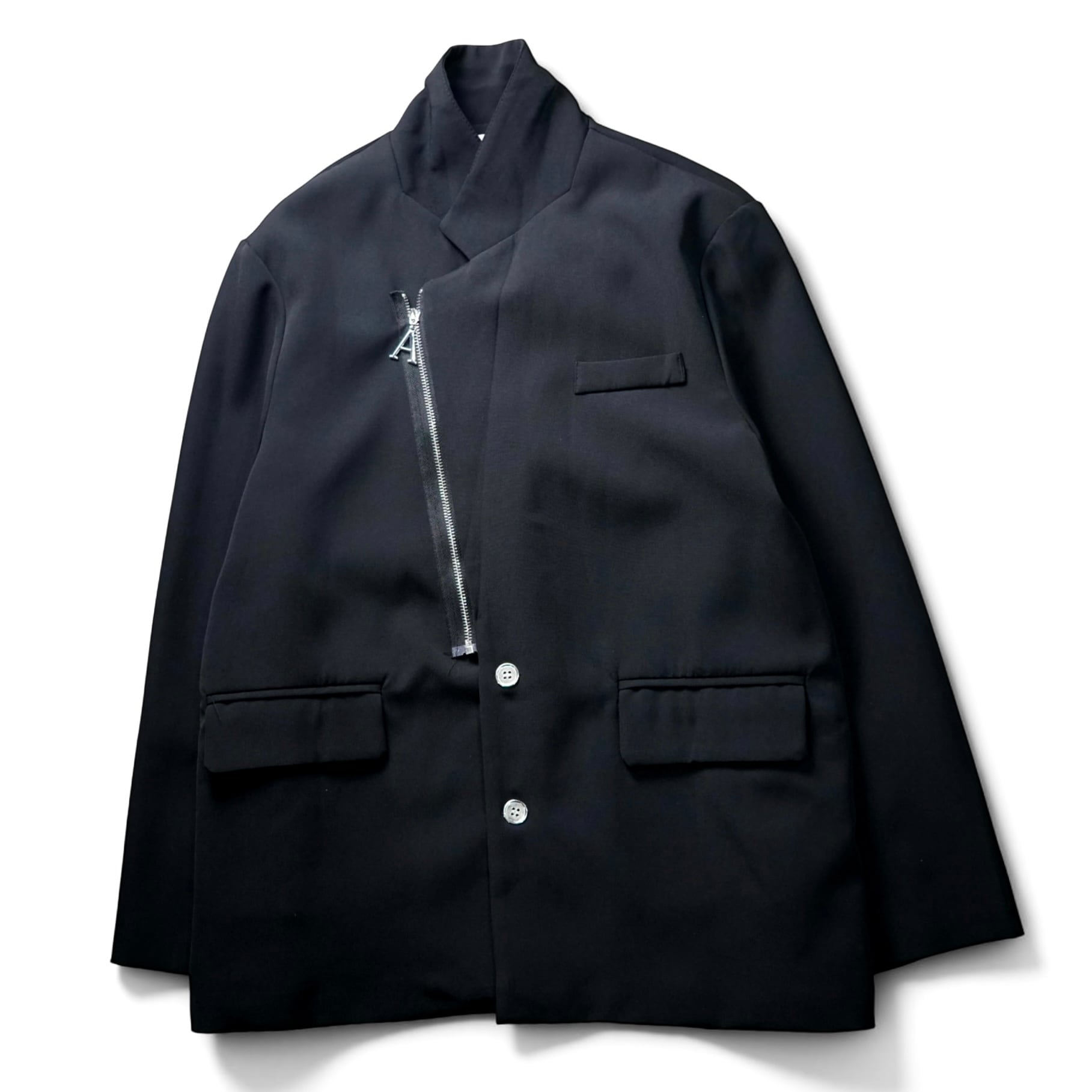 クラシックなテーラードジャケットをベースにしながら、フロントには斜めに走るジップディテールを配置。