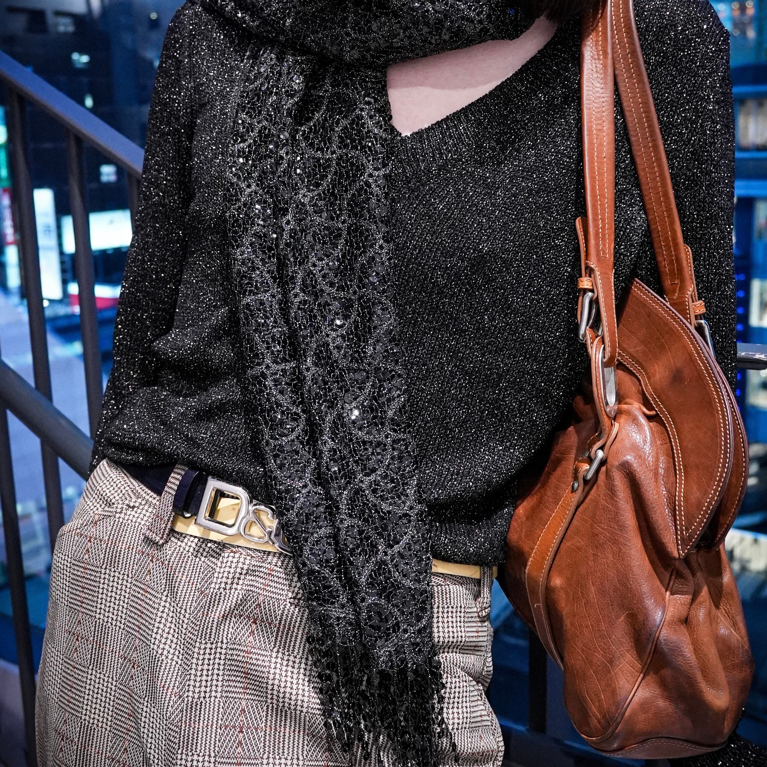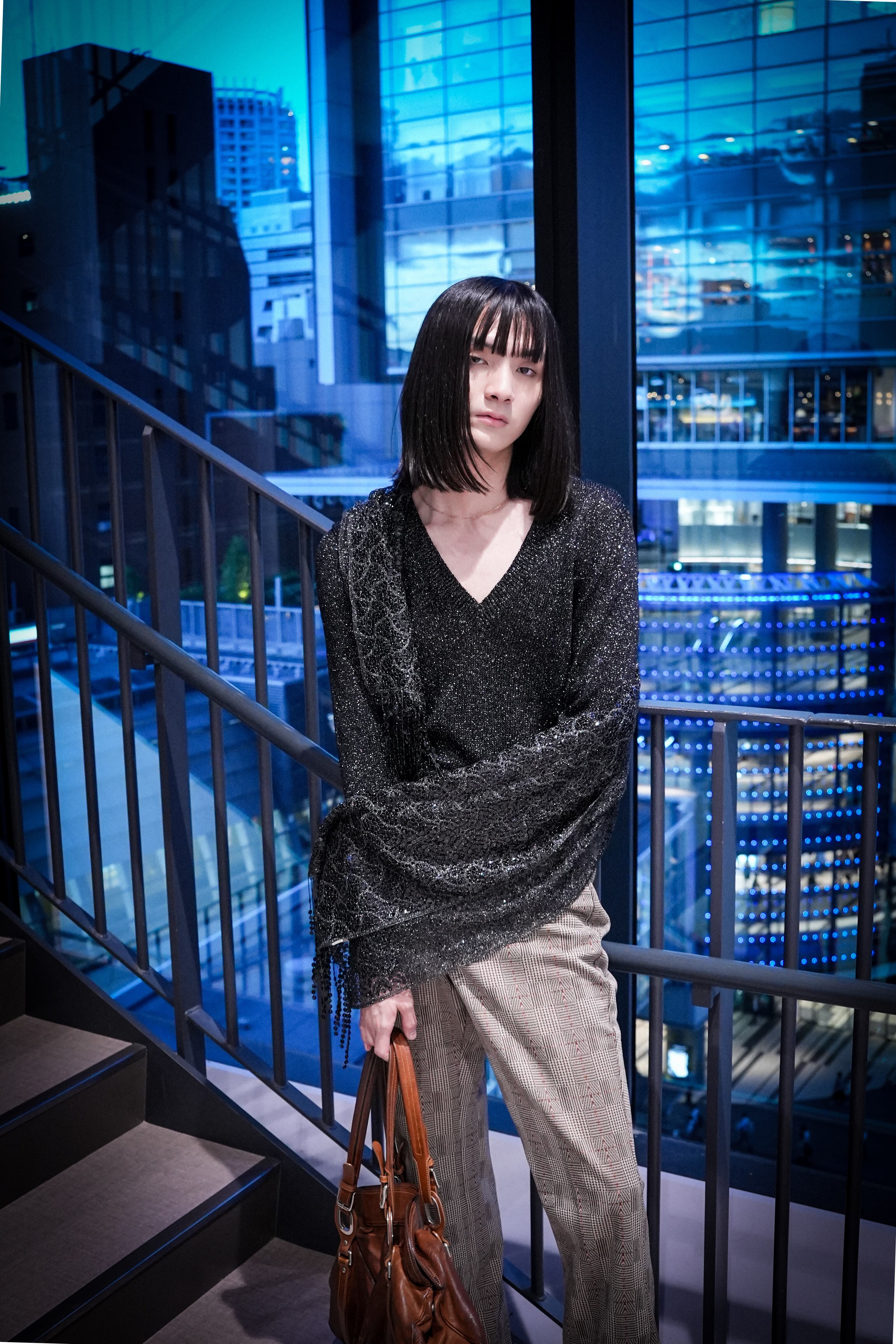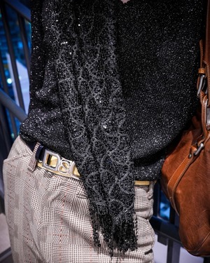 クラシックなシルエットに現代的なエッセンスを加えた、高級感と洗練さを感じさせるラメニット。